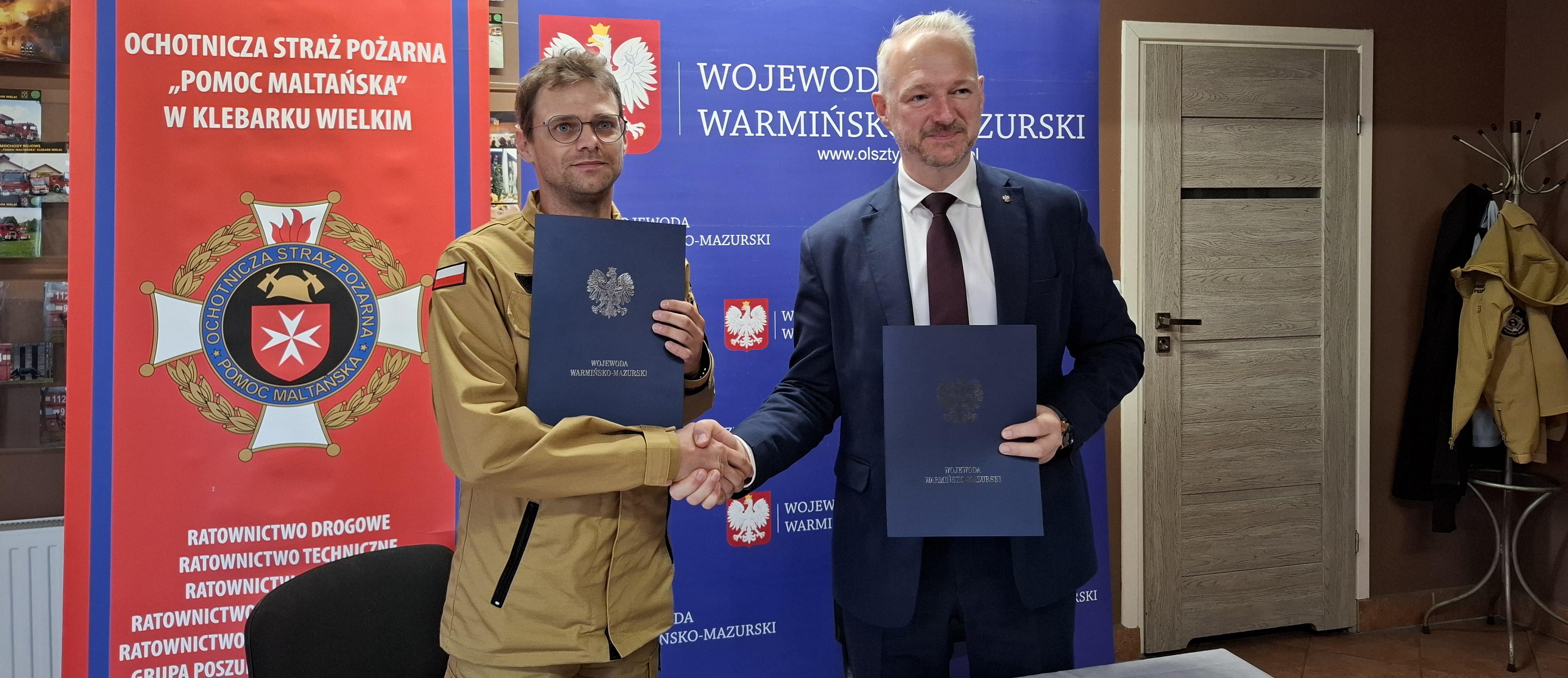 Wojewoda warmińsko-mazurski Radosław Król podpisał umowę na dofinansowanie Ochotniczej Straży Pożarnej w Klebarku Wielkim. Jednostka dostała dotację w wysokości 25 tys. zł.