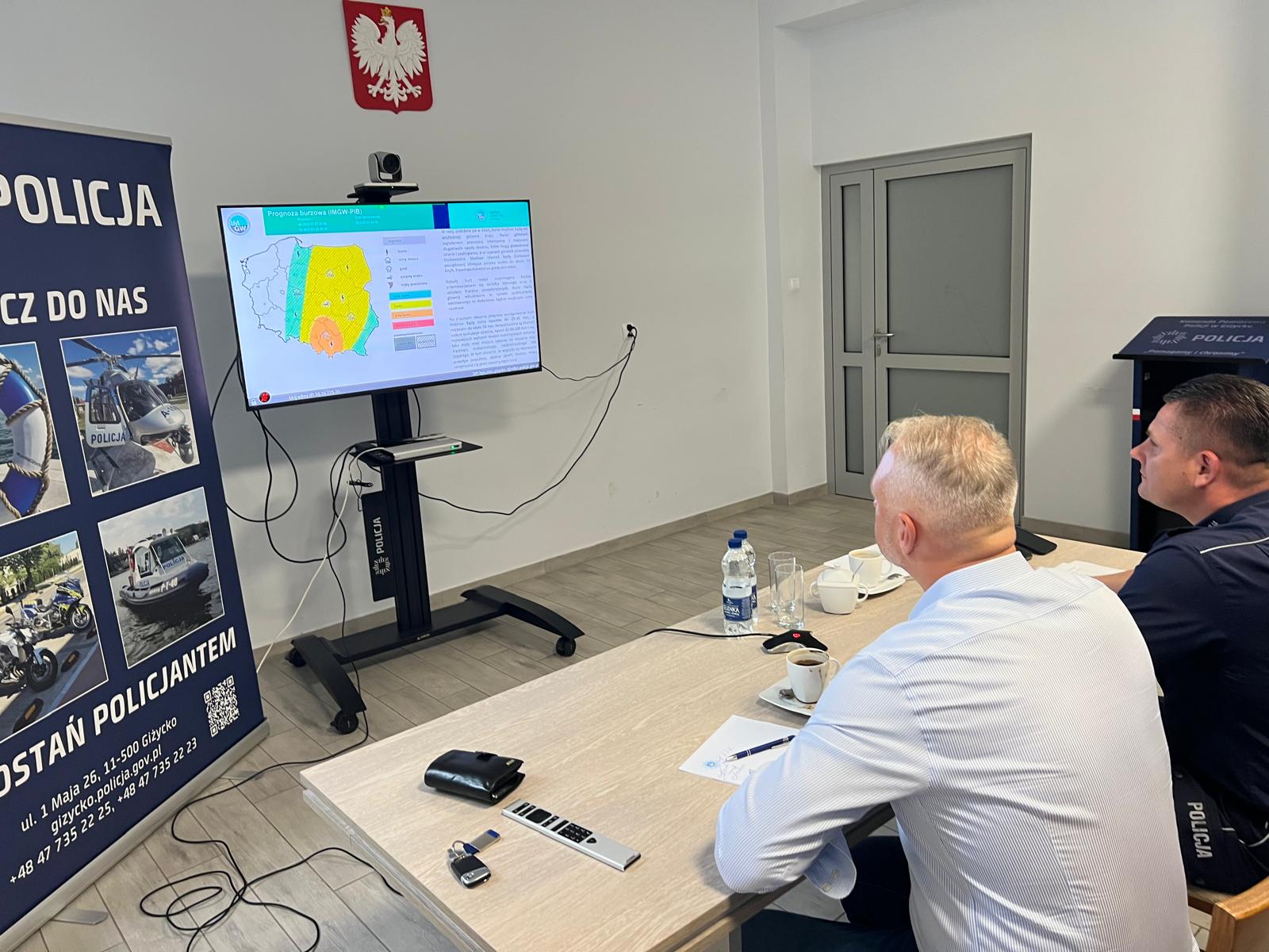 Wojewoda Radosław Król na posiedzeniu Rządowego Zespołu Zarządzania Kryzysowego, fot. Komenda Wojewódzka policji w Olsztynie