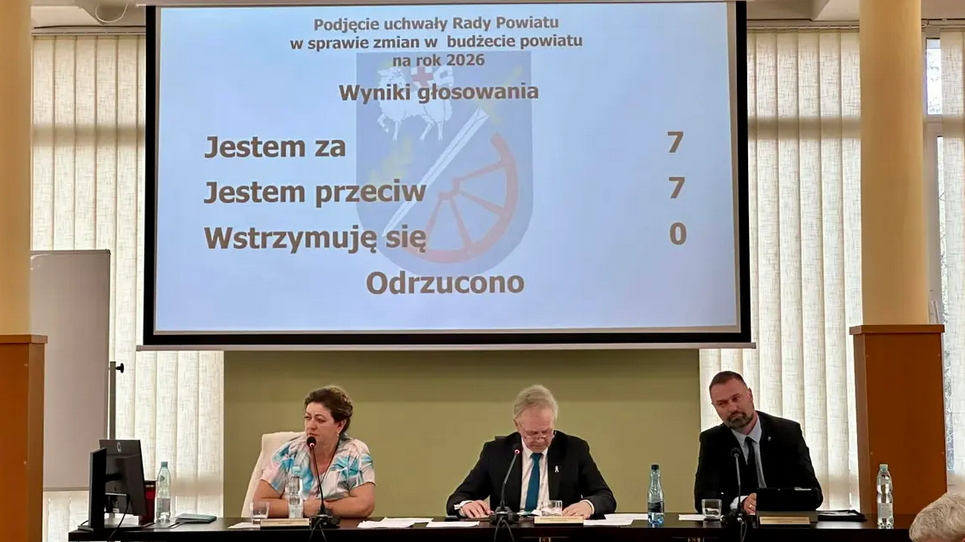 Siedem głosów za i dokładnie tyle samo przeciw – taki wynik głosowania w Radzie Powiatu Braniewskiego przesądził o utracie blisko miliona złotych z rządowego programu ochrony ludności i obrony cywilnej. W powiecie graniczącym z rosyjskim Obwodem Królewieckim brakuje politycznej zgody na inwestycje w bezpieczeństwo, a samorządowcy przerzucają się oskarżeniami.