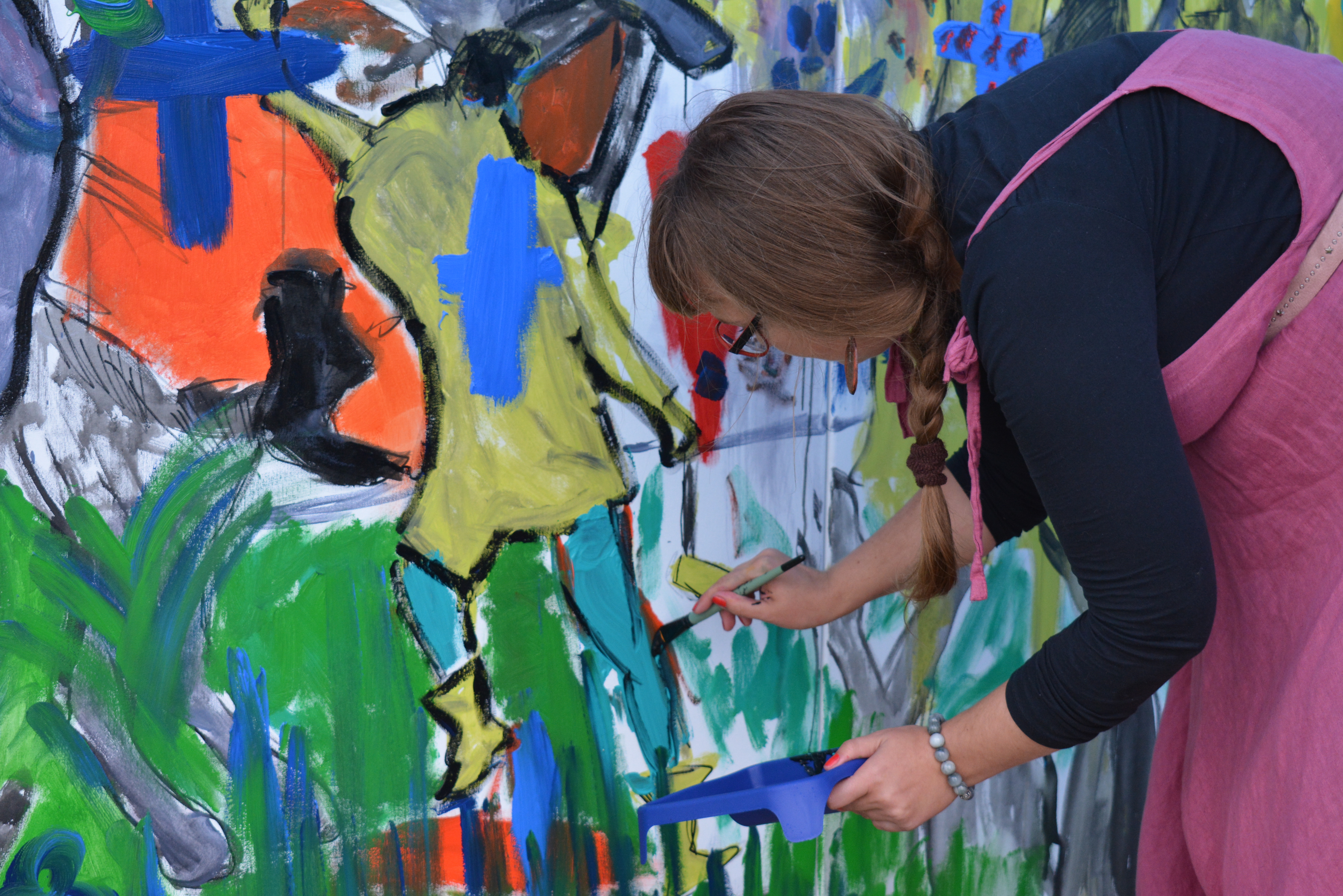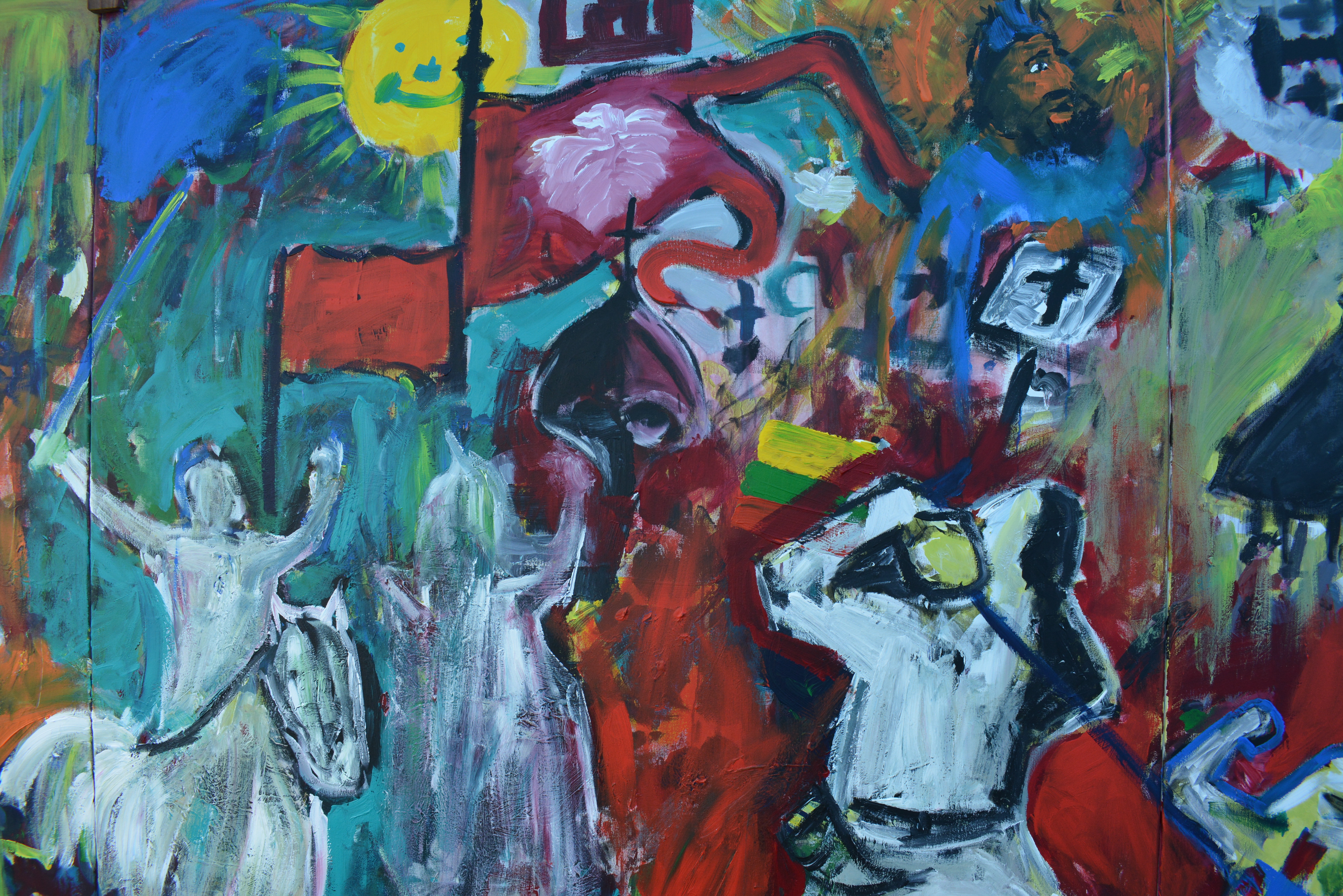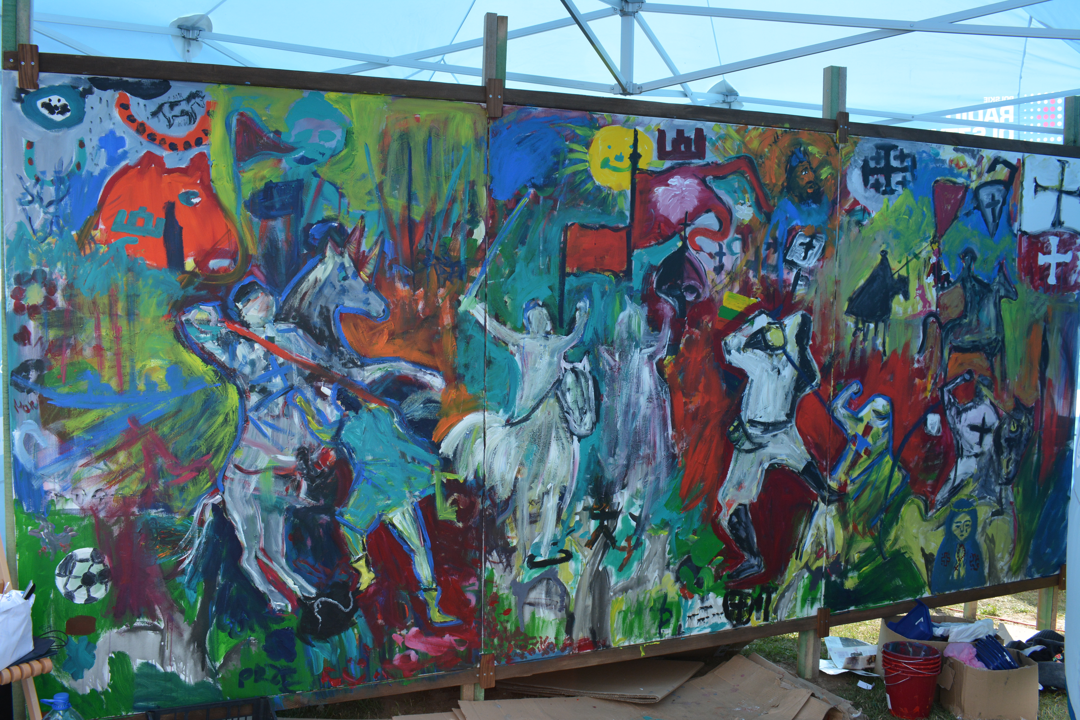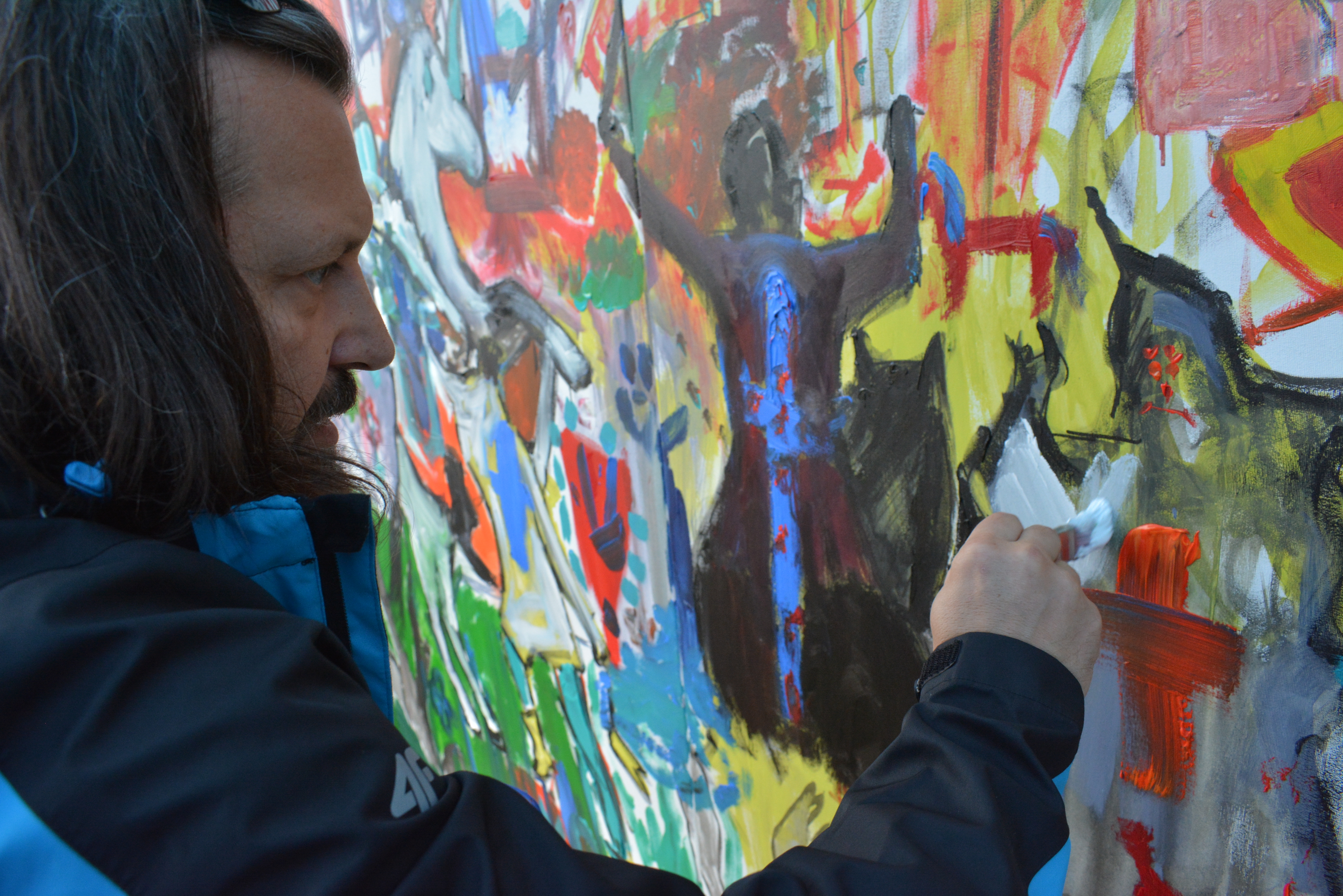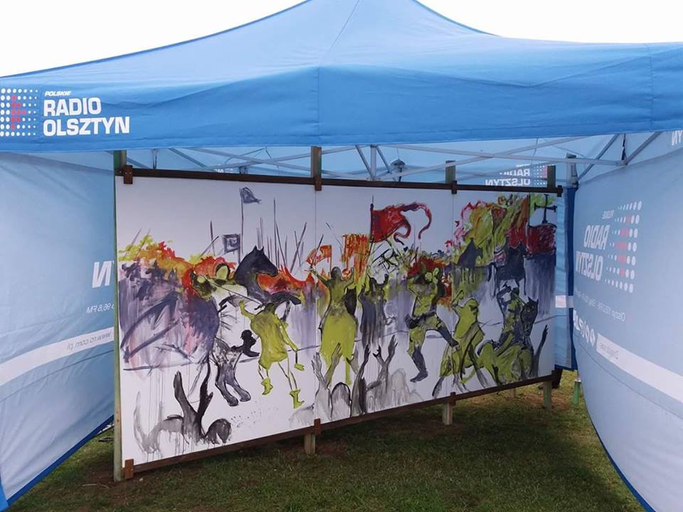 Wspólnie namalowaliśmy nową Bitwę pod Grunwaldem. Dzieło powstało na płótnie o imponujących wymiarach, a do jego stworzenia wykorzystaliśmy hektolitry farby. Szkic przez ostatnich kilka dni powstawał w pracowni artystki Natalii Tejs, która wspierała nasze działanie na Polach Grunwaldzkich. – Mam nadzieję, że na obrazie nie zostanie ani kawałek pustej przestrzeni – dodaje.