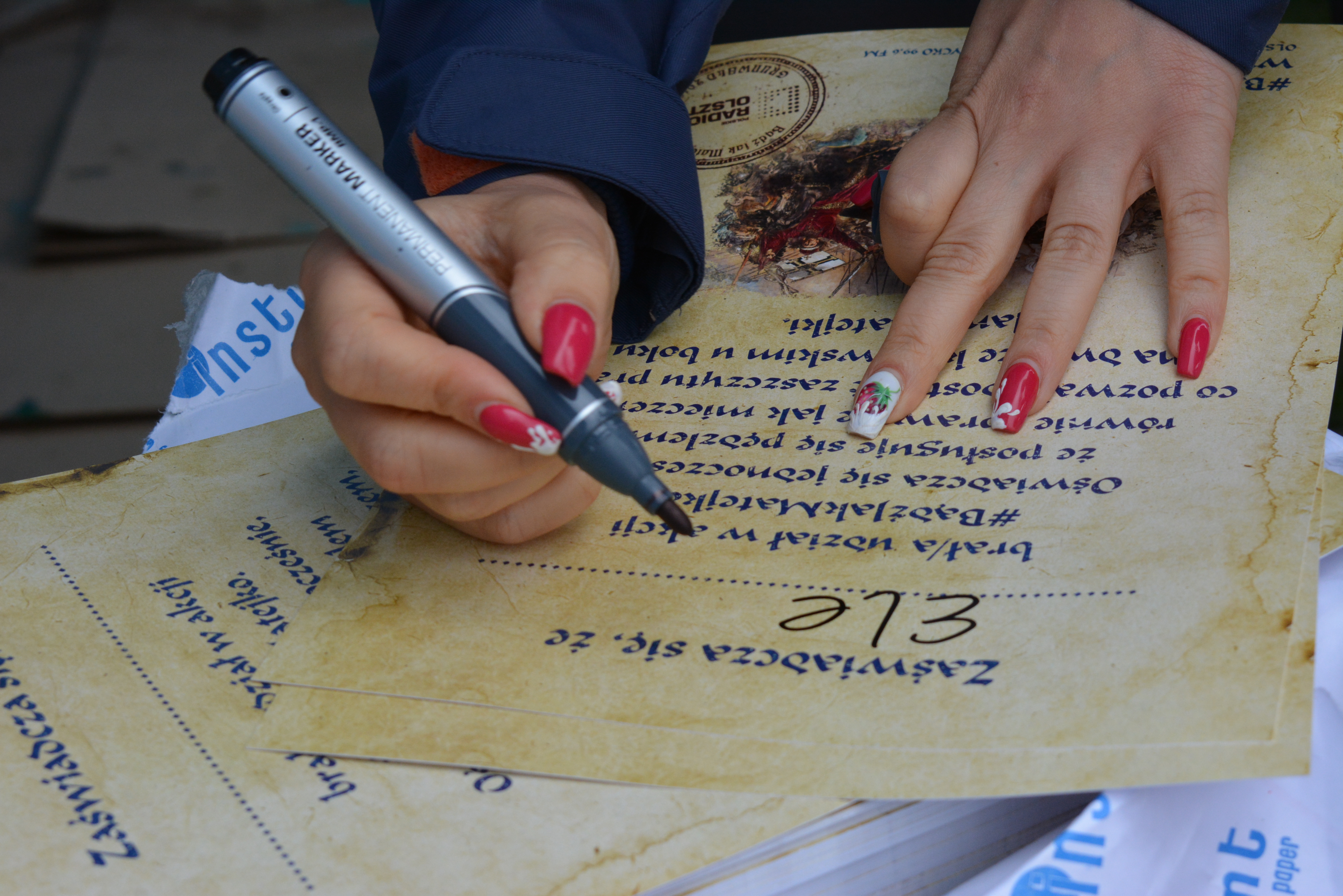 Załoga Radia Olsztyn przywiozła także na Pola Grunwaldzkie mobilną pocztę. Każdy mógł napisać pozdrowienia, wskazać odbiorcę, a my wysyłaliśmy do niego pocztówkę.