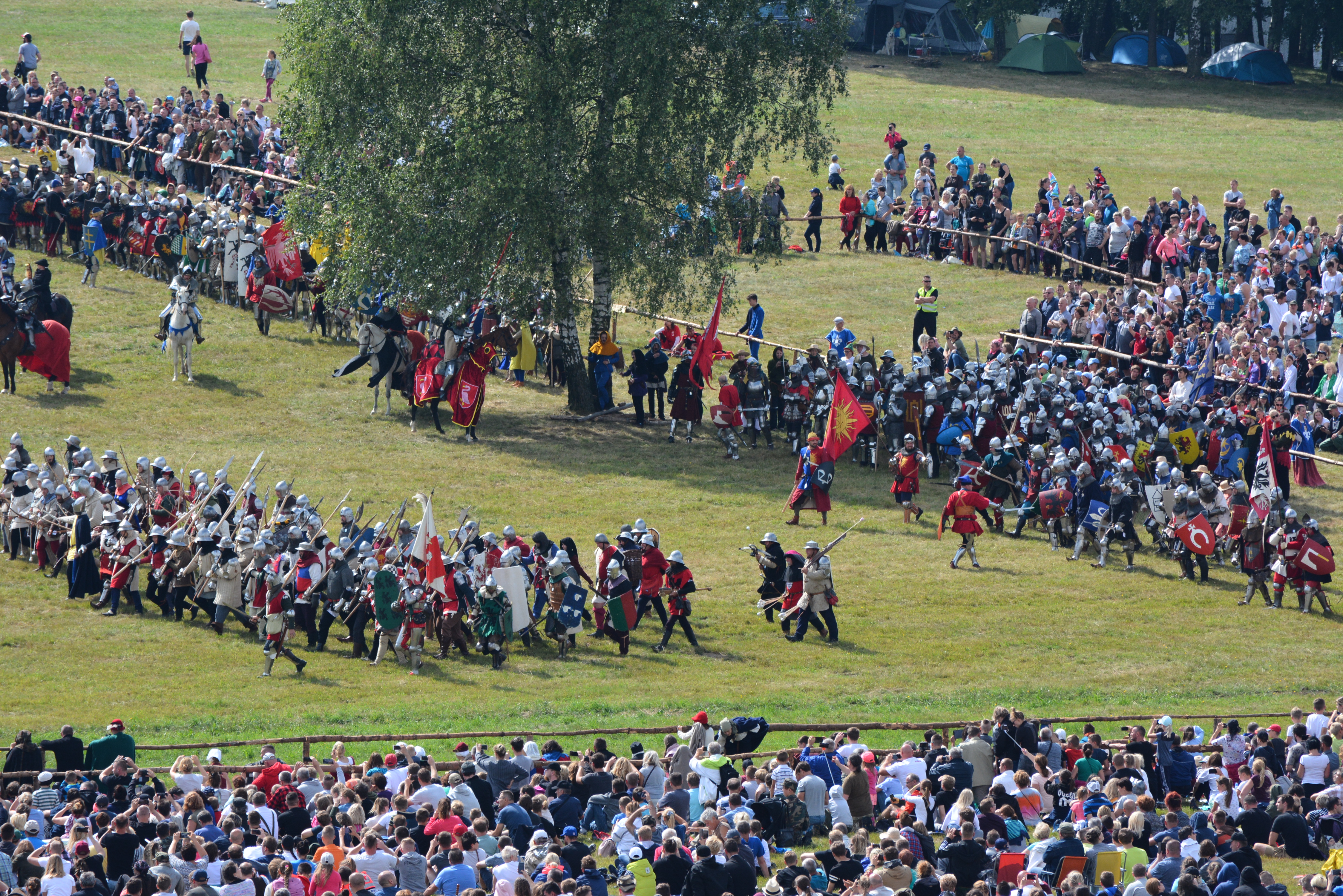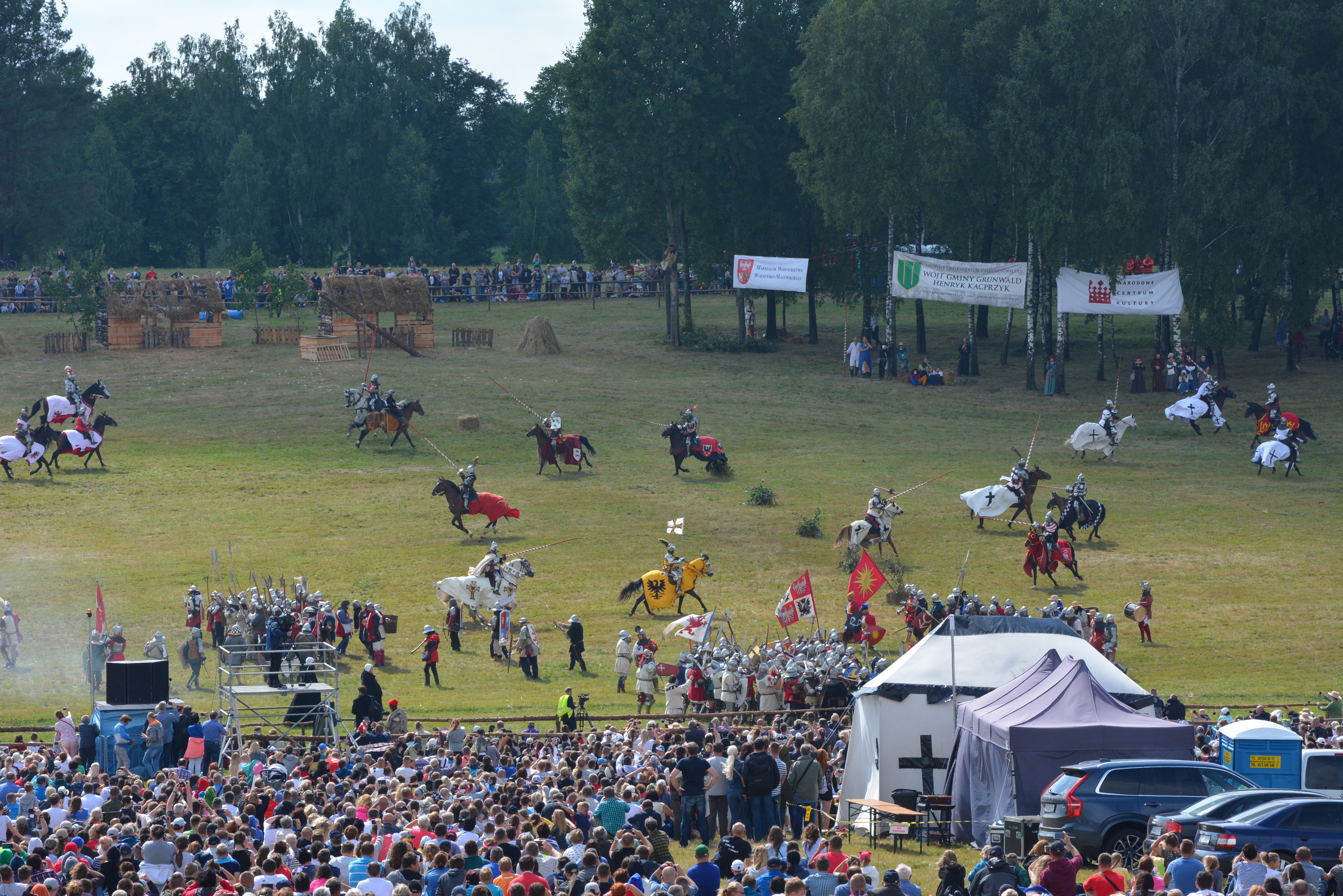 Jak co roku – inscenizację wielkiej bitwy z 1410 roku na Polach Grunwaldu poprzedził uroczysty apel. Uczestniczyli w nim żołnierze Wojska Polskiego i harcerze, którzy zjechali tu na Zlot Wspólnoty Drużyn Grunwaldzkich.