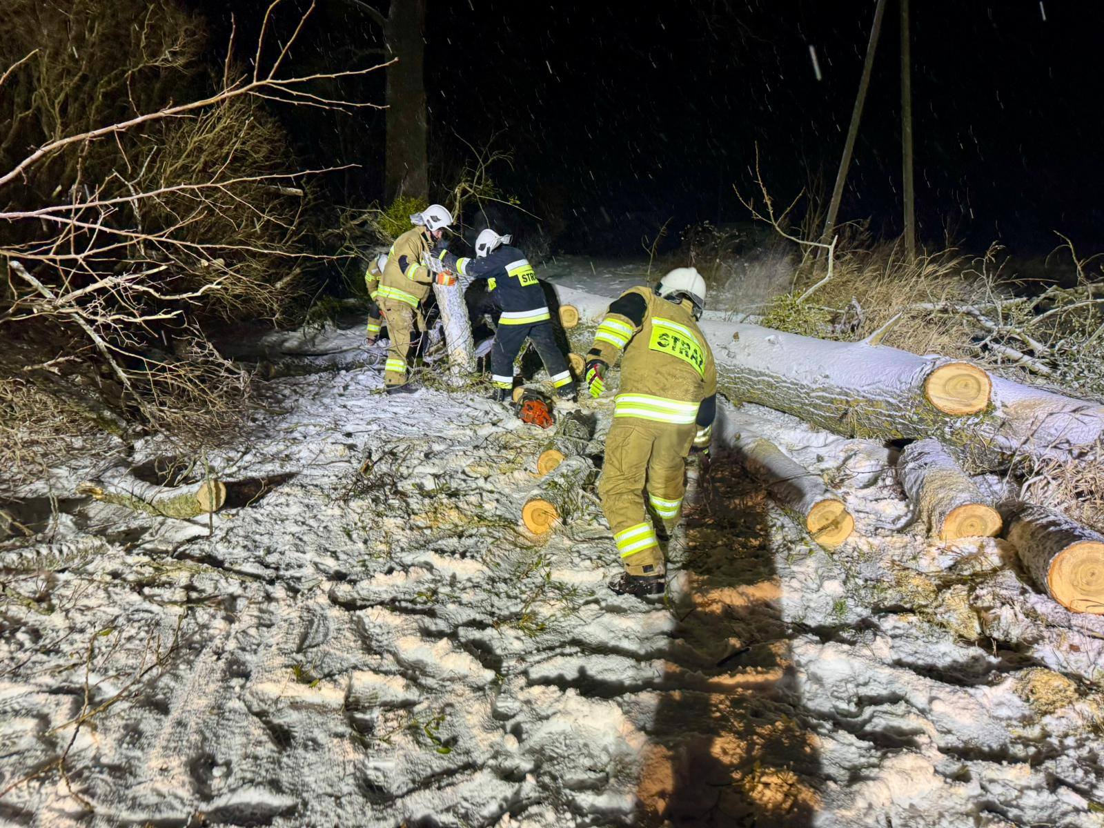Intensywne opady śniegu to nie tylko zasypane drogi. Warmińsko-mazurscy strażacy od wtorkowego poranka mieli wiele interwencji związanych ze śniegiem gromadzącym się na gałęziach drzew.