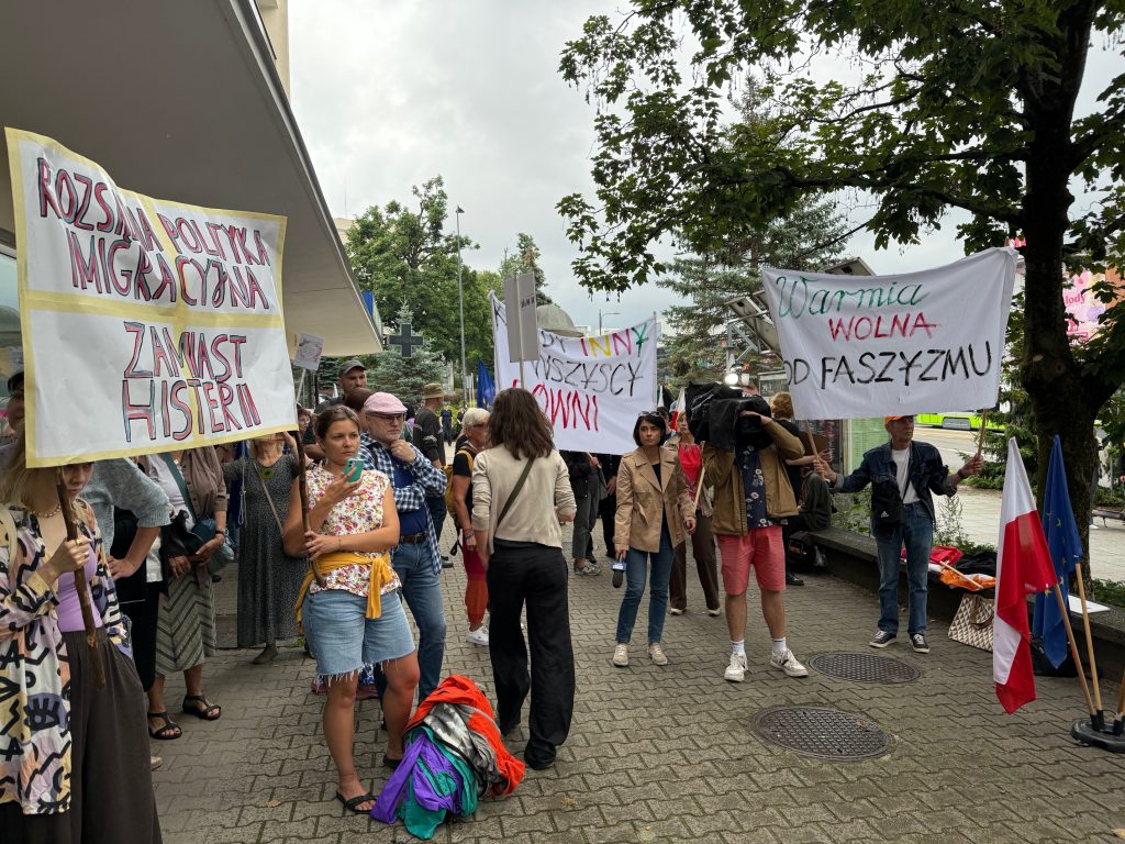 W Olsztynie protest odbył się przed urzędem miasta na pl. Jana Pawła II. Piotr Cezary Lisiecki z Konfederacji/Ruchu Narodowego skrytykował obecny rząd za brak skutecznej polityki kontroli napływu imigrantów do Polski.