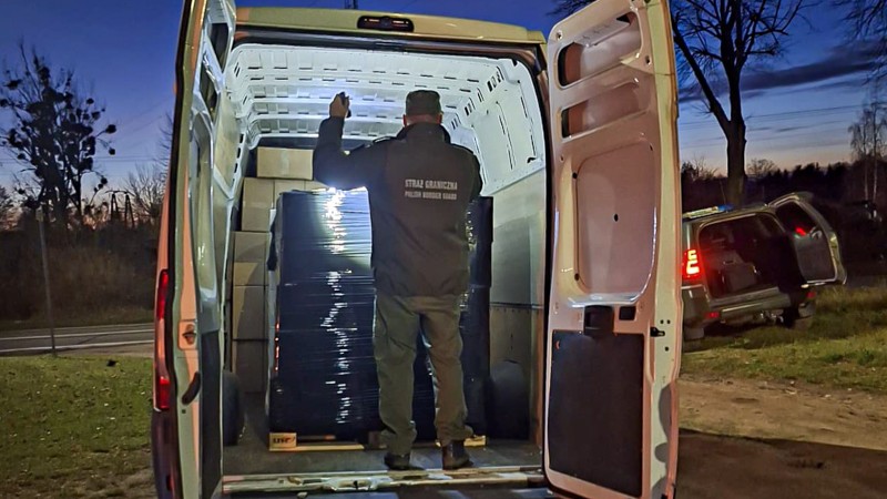 Funkcjonariusze z Placówki Straży Granicznej w Węgorzewie zatrzymali w powiecie szczycieńskim do kontroli drogowej pojazd marki peugeot. Kierowcą był mieszkaniec powiatu mrągowskiego, który twierdził, że przewozi papier ścierny. Przeszukali również pomieszczenie mieszkalne należące do 52-latka i tam znaleźli kolejne wyroby tytoniowe