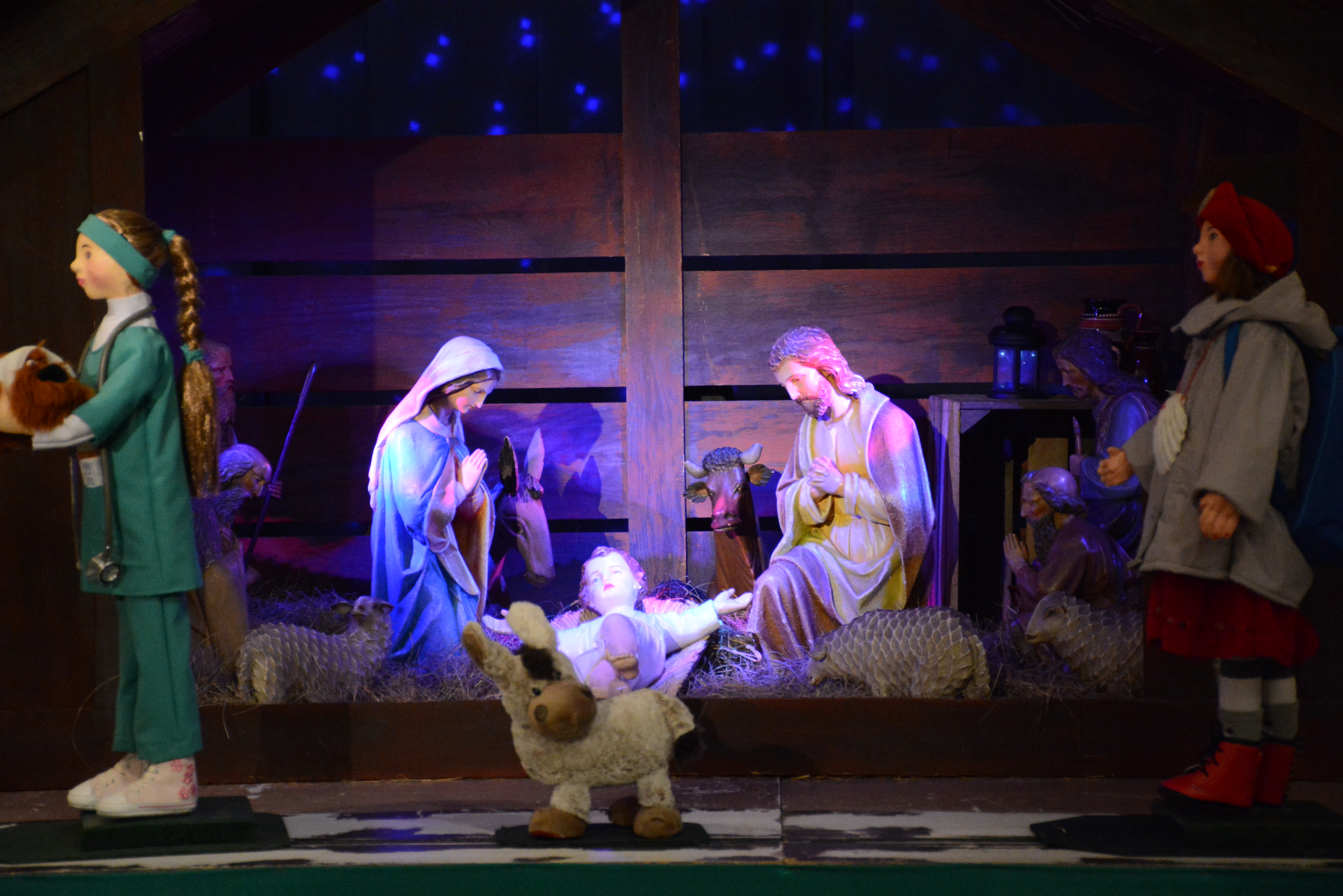 Reportaż opowiada o szopce w bazylice konkatedralnej w Olsztynie. Okazuje się, że pomysł ubrania figurek w stroje ludowe, należał do Marii Zientary-Malewskiej. Postaci odwiedzające Dzieciątko Jezus okazały się jednak podniszczone i stare, stąd powstała decyzja o ich „przebraniu”. Tego zadania podjęła się siostra Kamila, ze Zgromadzenia Sióstr św. Katarzyny, Dziewicy i Męczennicy; pracująca w olsztyńskiej katedrze. Ona jest główną bohaterką reportażu. Obecni są w nim także proboszcz parafii pw. św. Jakuba ks. prałat, kanonik dr Andrzej Lesiński oraz wikariusz ksiądz Paweł Grzesiak. Reportaż nagrano 12 i 14 grudnia 2017 roku, w prezbiterium i zakrystii katedry, a także w domu siostry Kamili przy ulicy St. Staszica. Tam również znajduje się pracownia siostry, gdzie figurki poddano renowacji.
