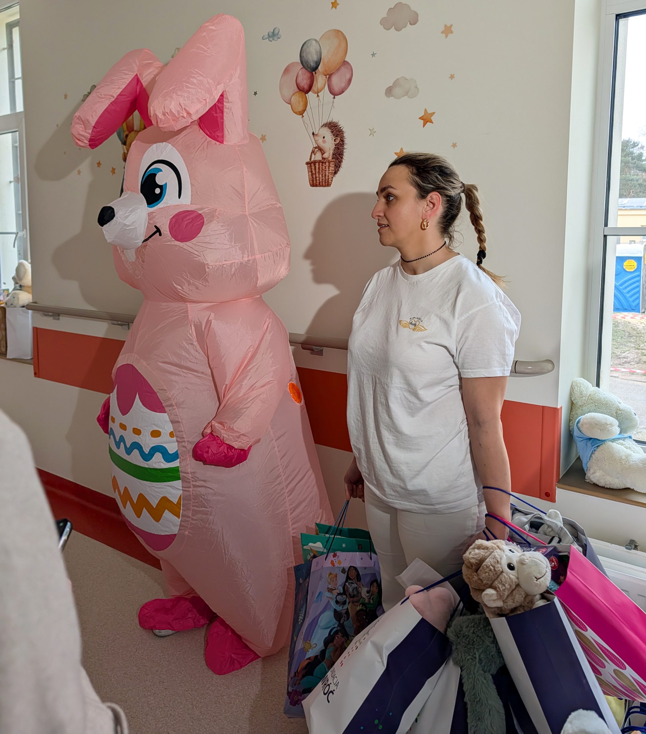 Upominki dla każdego, od maluszka po starsze dzieciaczki, które znalazły się w tym świątecznym czasie na oddziale. Cieszymy się, że ten nasz zając każdemu przyniósł trochę radości