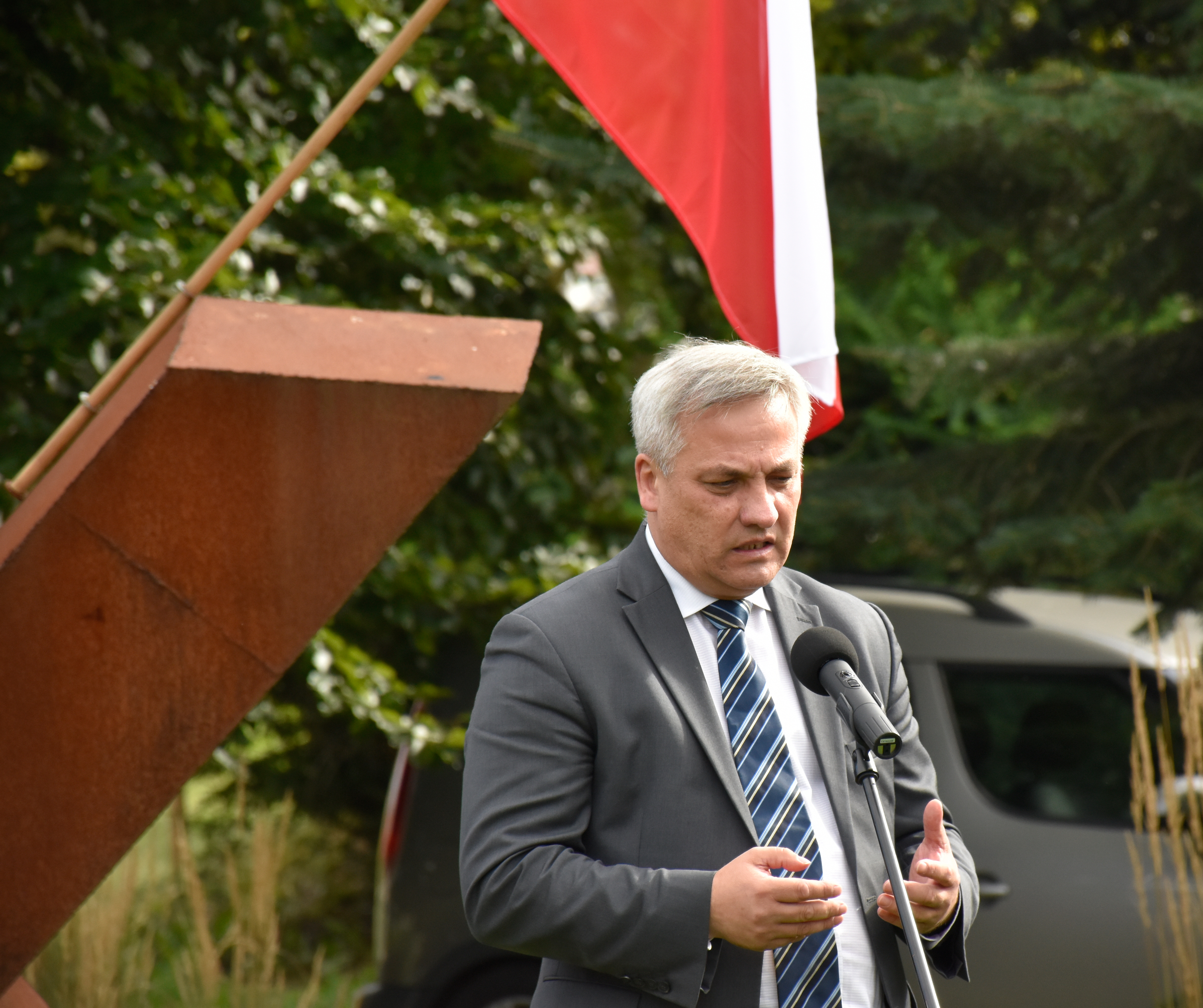 Obecny na rocznicowych obchodach Michał Wypij, kandydat Zjednoczonej Prawicy na prezydenta Olsztyna, obiecywał likwidację pomnika znajdującego się w centrum miasta.