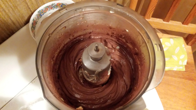 Robimy masę. Gotujemy budyń – szklanka mleka, torebka budyniu i szklanka cukru. Do malaksera wrzucamy masło i budyń, oraz żółtko i 2 łyżki kakao. Dolewamy odrobinę spirytusu. Miksujemy. Kroimy czekoladę na kawałeczki i dosypujemy do masy, krótko mieszając.