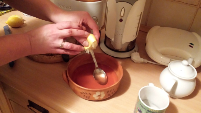 Poncz do nasączenia ciasta: 3/4 szklanki wody, 3 łyżki wiśniówki i pół cytryny.