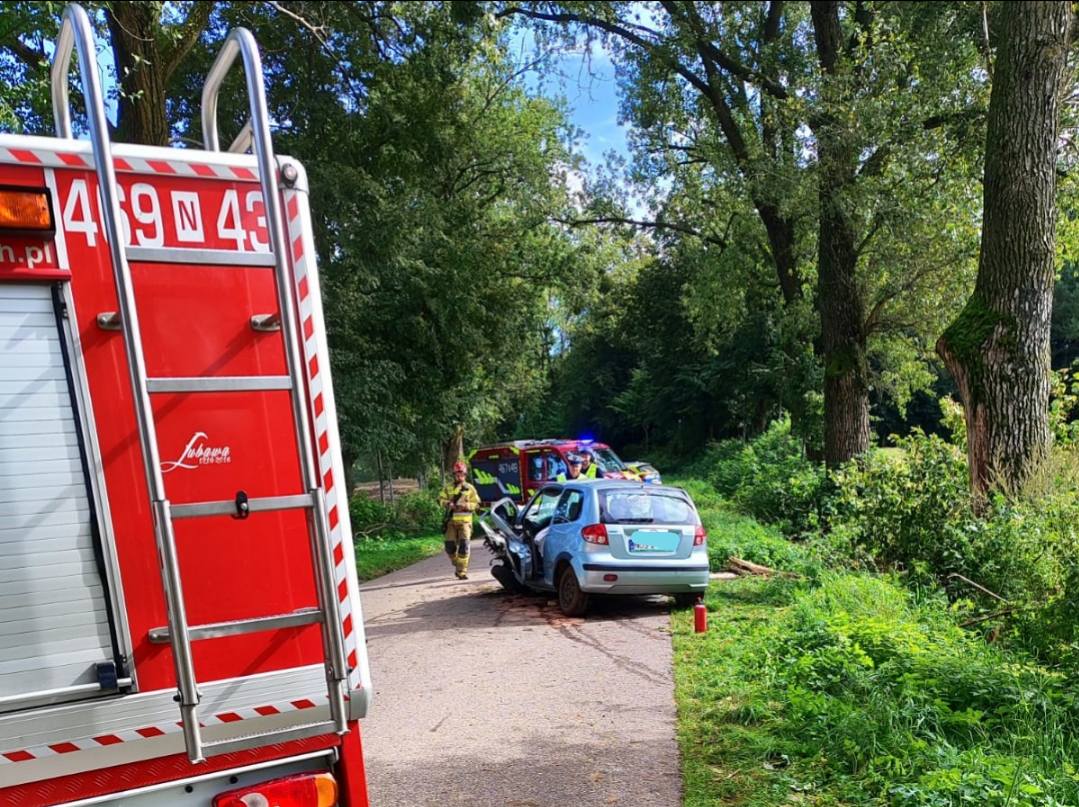 Ze zgłoszenia wynikało, że w środku znajduje się mężczyzna zakleszczony w pojeździe. Po dotarciu na miejsce ustalono, że faktycznie doszło do zderzenia samochodu osobowego z drzewem