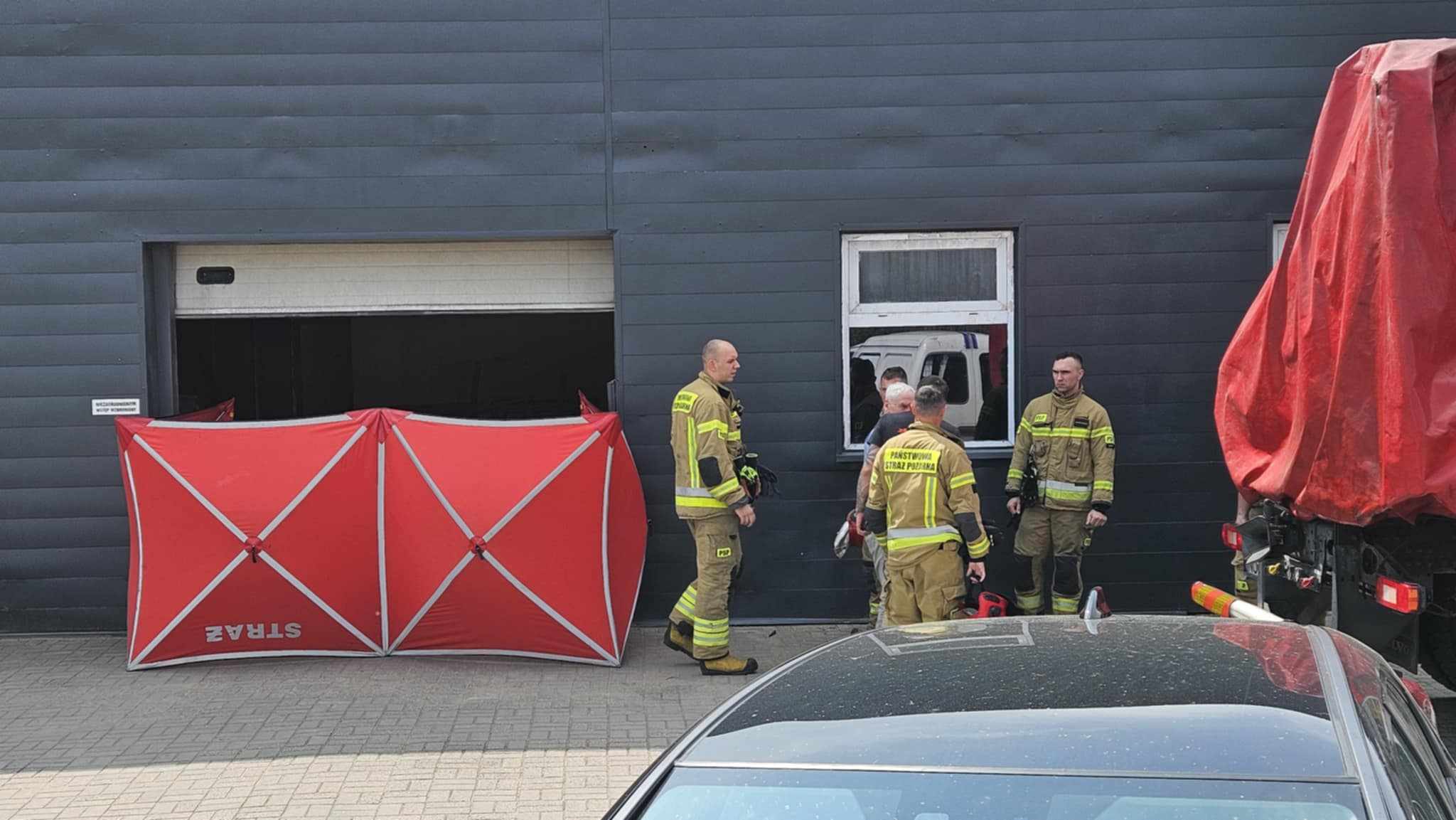 Do zdarzenia doszło w jednym z zakładów usługowych przy ulicy Jagiellończyka. Na miejscu pracują prokurator i grupa operacyjno-procesowa. Trwa ustalanie okoliczności wypadku.