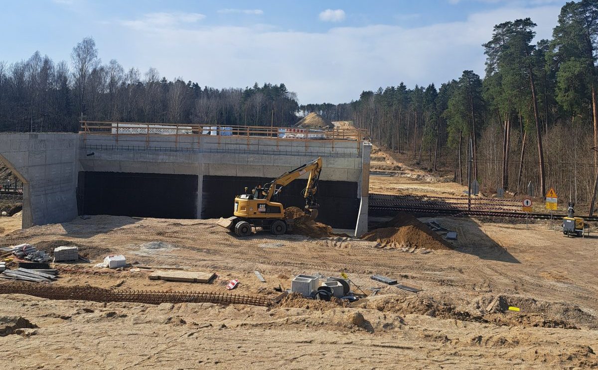 Prawdziwy test inżynieryjny odbywa się właśnie teraz. Na dziś zaplanowano montaż potężnego przejścia dla zwierząt. Obiekt powstaje z gotowych prefabrykatów i zostanie ułożony nad przepustem w ciągu dopływu spod leśniczówki Stary Dwór. Po jego osadzeniu drogowcy natychmiast ruszą z budową nasypu, który połączy nowe przejście z kluczowym elementem inwestycji – wiaduktem nad linią kolejową nr 216. Następnie ciężki sprzęt przejdzie do formowania docelowego korpusu drogi.