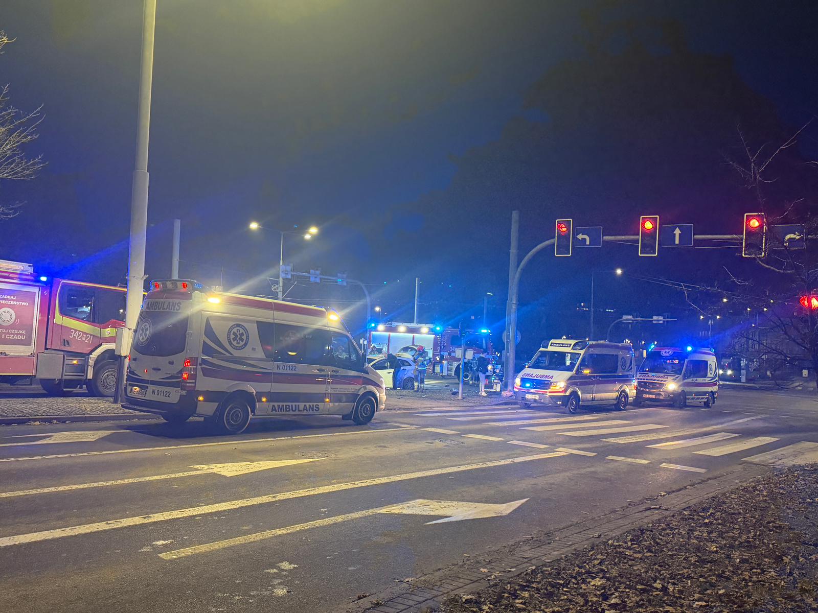 Trzy osoby, w tym dziecko, trafiły do szpitala po zderzeniu dwóch samochodów osobowych w Elblągu. Skrzyżowanie jest zablokowane, a na miejscu pracują służby.