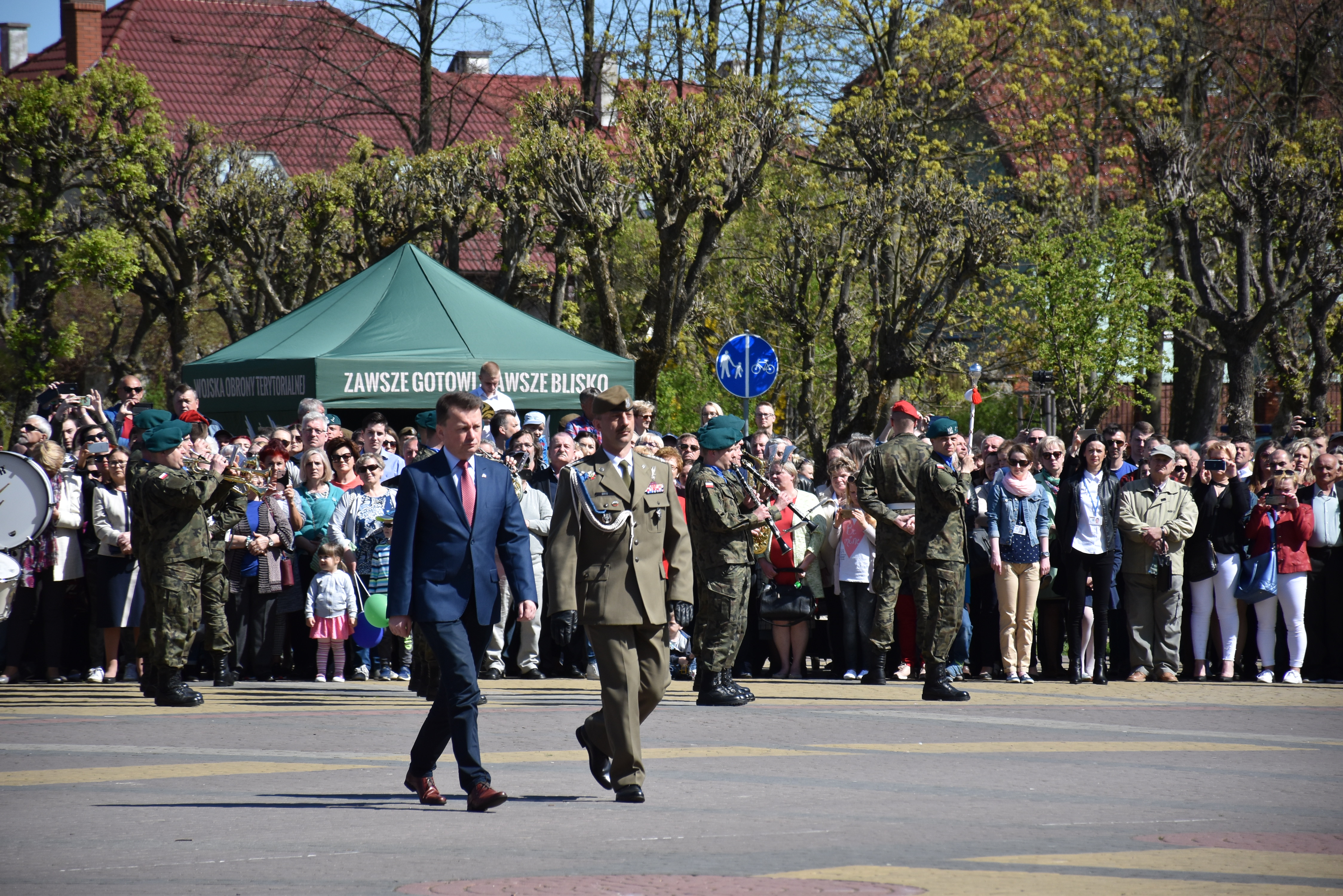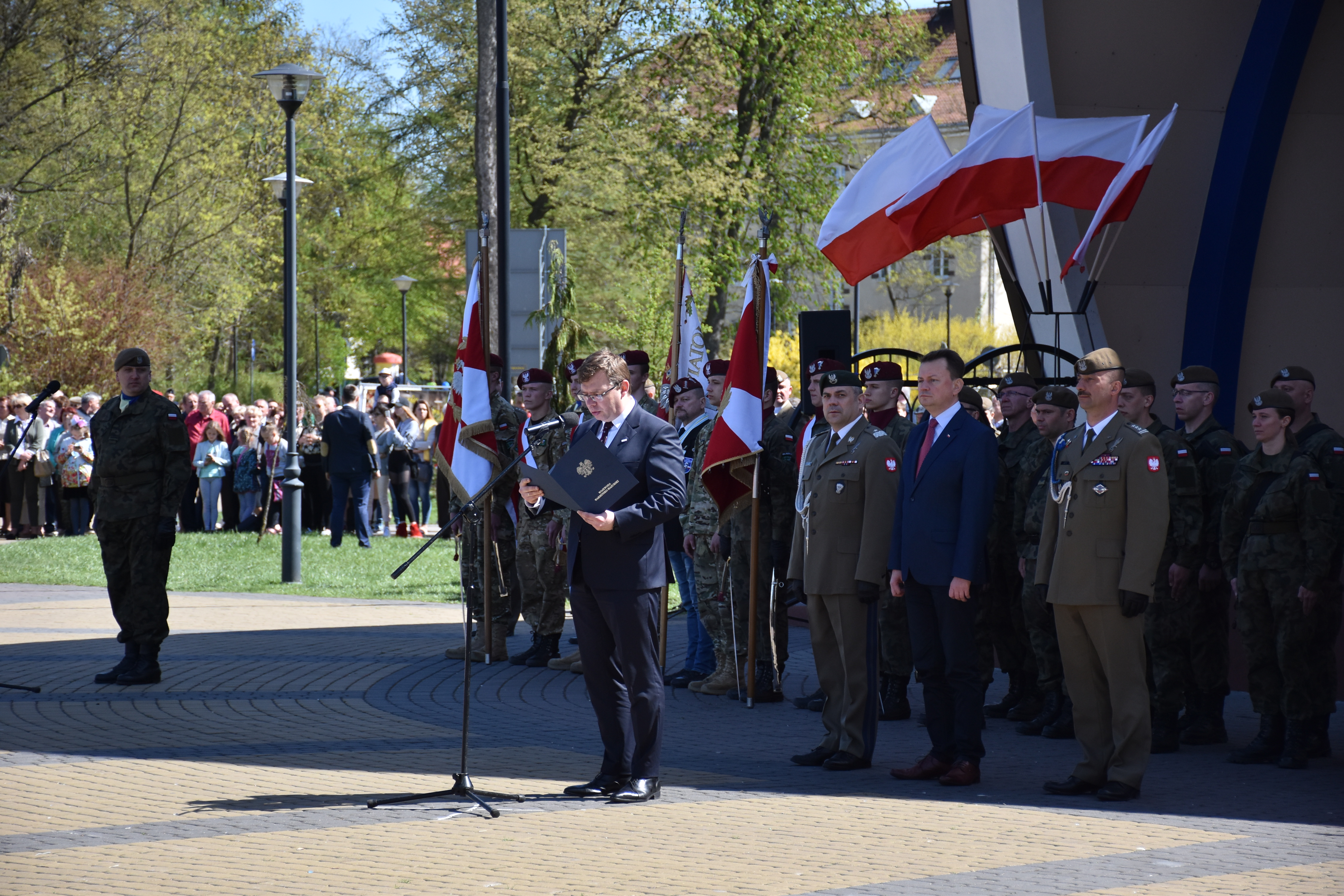 Uroczyste ślubowanie żołnierzy pierwszego batalionu 4. Warmińsko-Mazurskiej Brygady Wojsk Obrony Terytorialnej odbyło się w obecności ministra Mariusza Błaszczaka na rynku w Morągu.