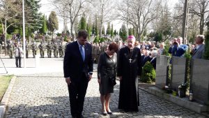 Olsztyn, cmentarz na ul. Poprzecznej, pomnik Ofiar Zbrodni Katyńskiej, obelisk upamiętniający 96 Ofiar Katastrofy Lotniczej pod Smoleńskiem