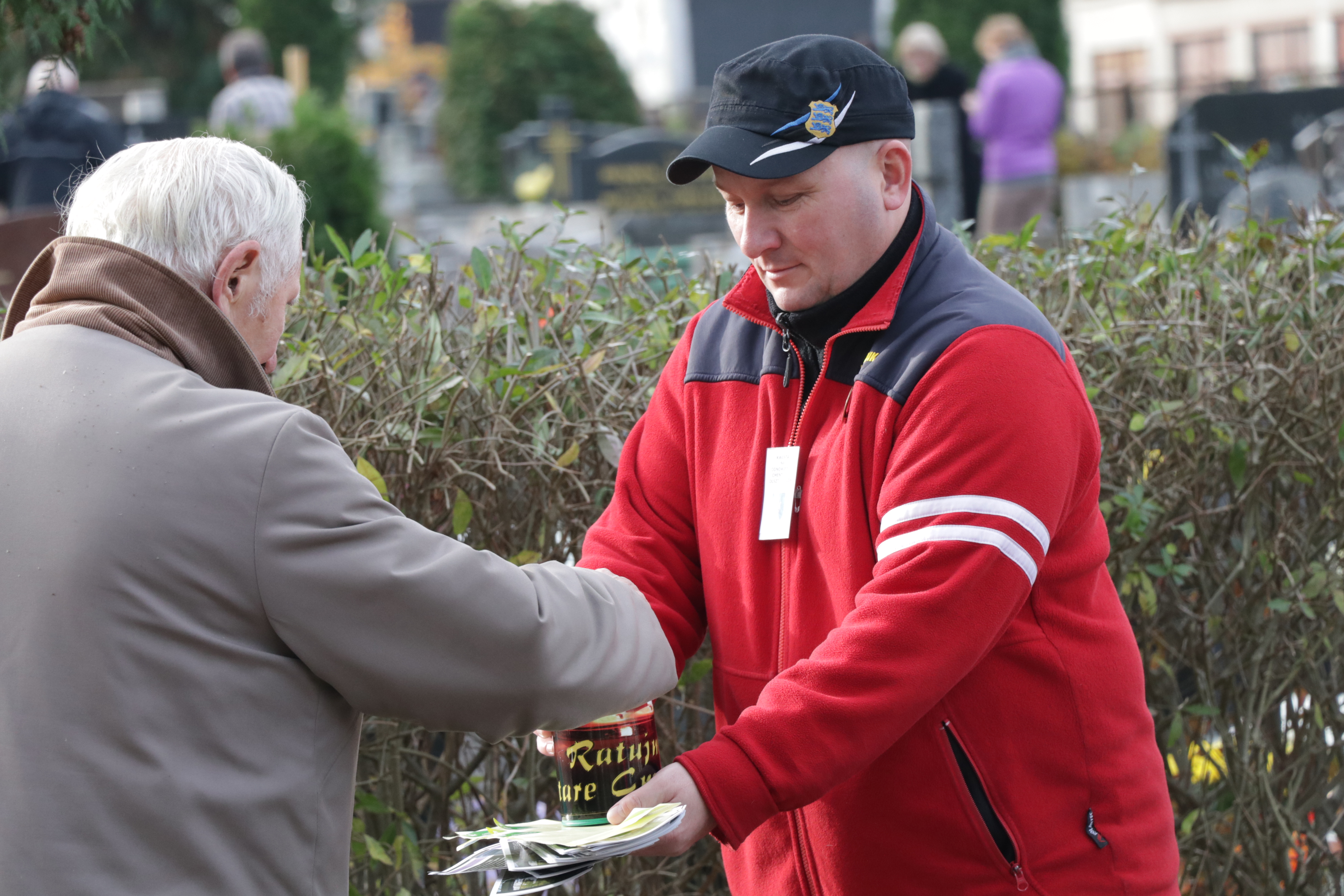 Dr Jan Chłosta ze Społecznego Komitetu Ratowania Dawnych Cmentarzy również od samego rana zbierał pieniądze na cmentarzu przy ulicy Poprzecznej: