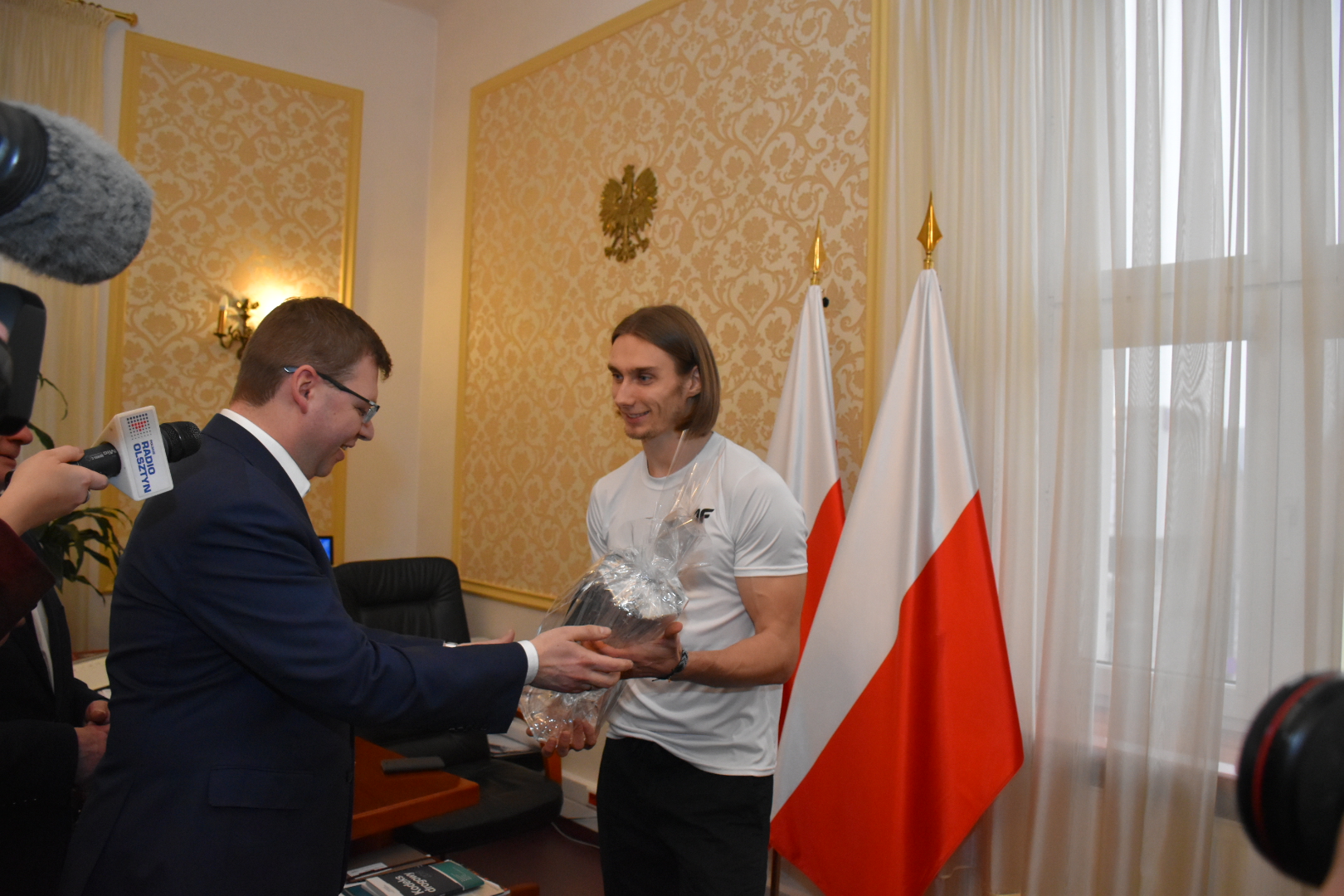Jedno ze spotkań odbyło się w urzędzie wojewódzkim. 25-latek z Reszla, wychowanek AZS-u UWM Olsztyn przyznaje, że jego zwycięstwo miało wielu ojców, a sukcesu gratulował mu wojewoda Artur Chojecki.