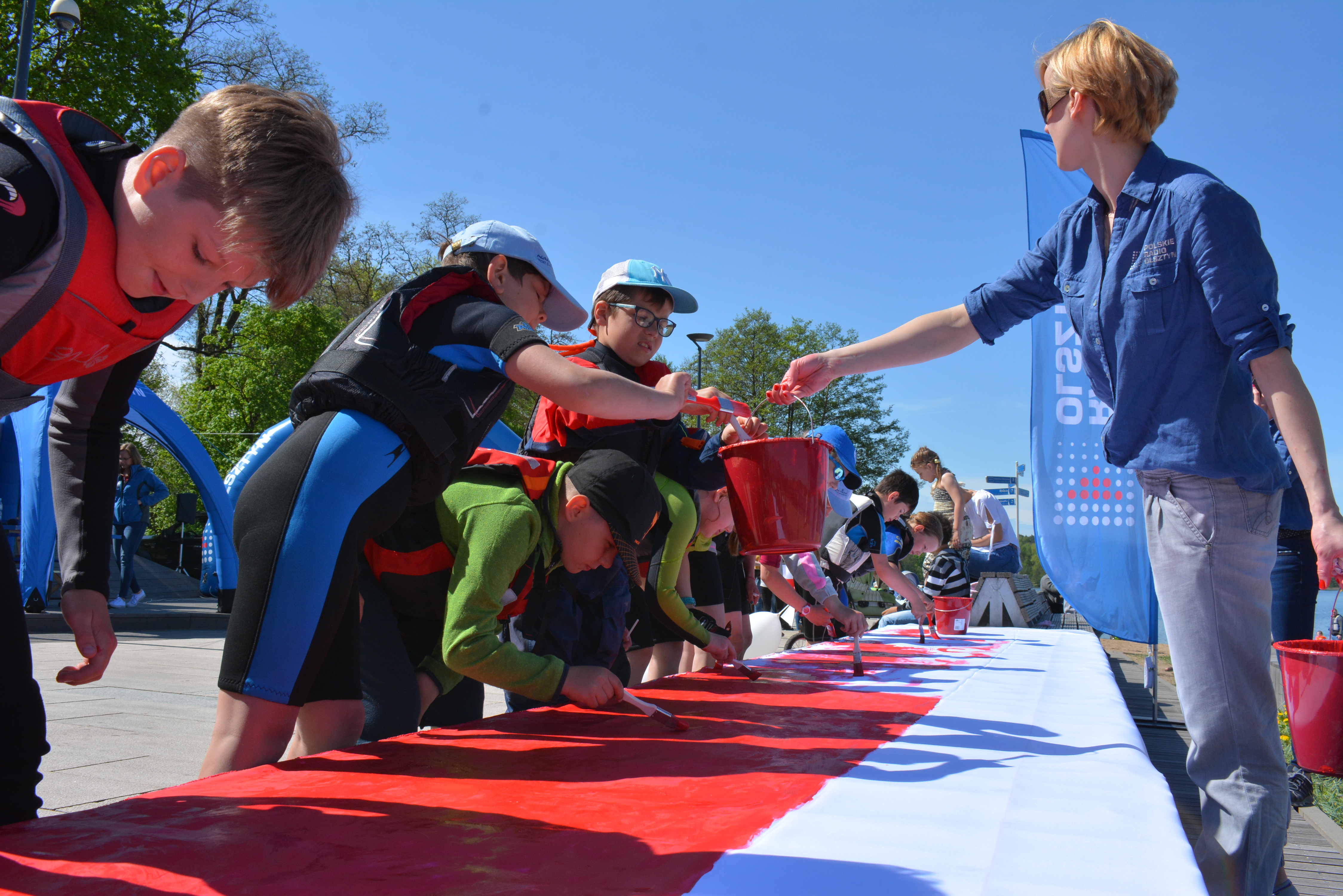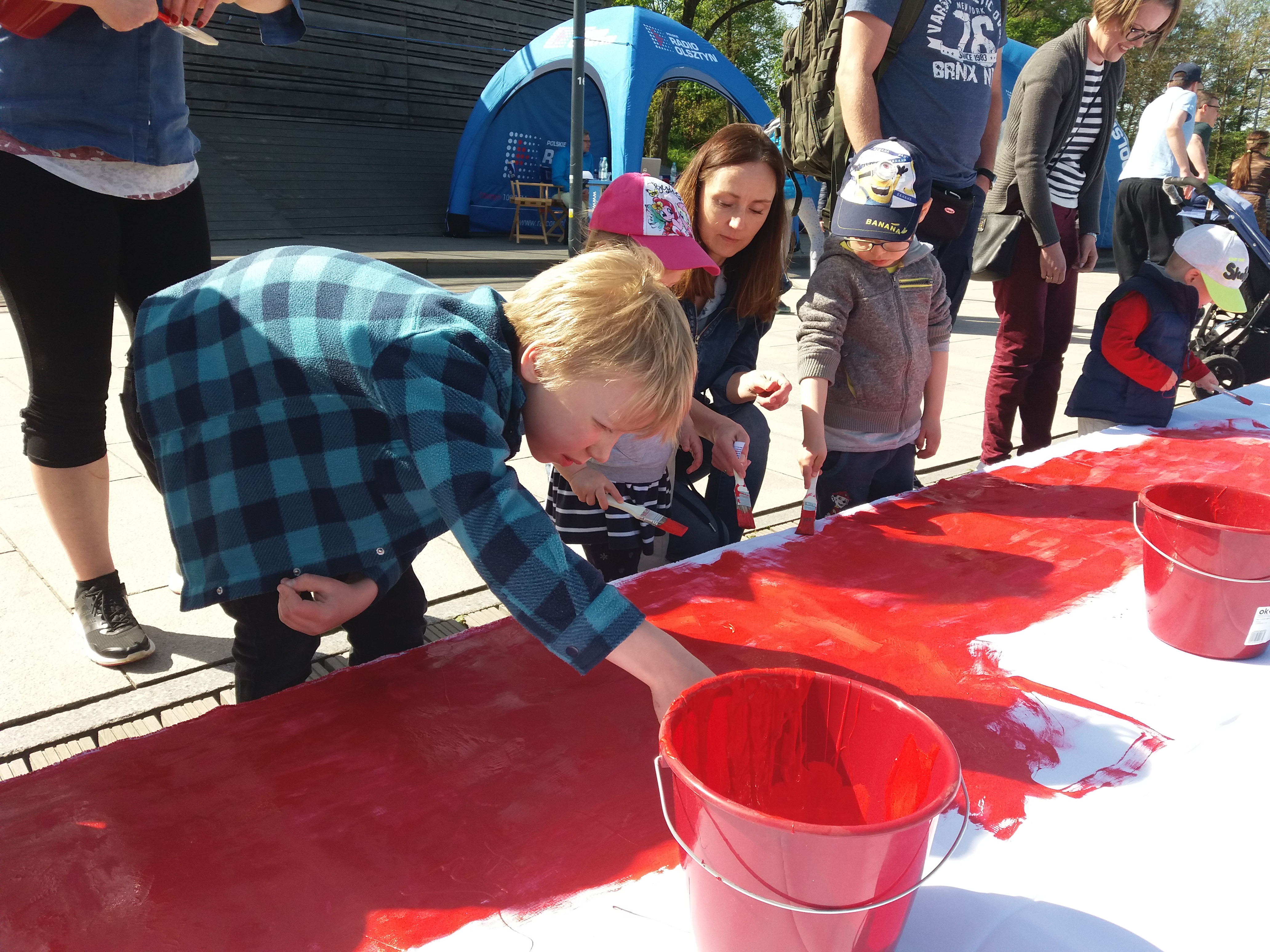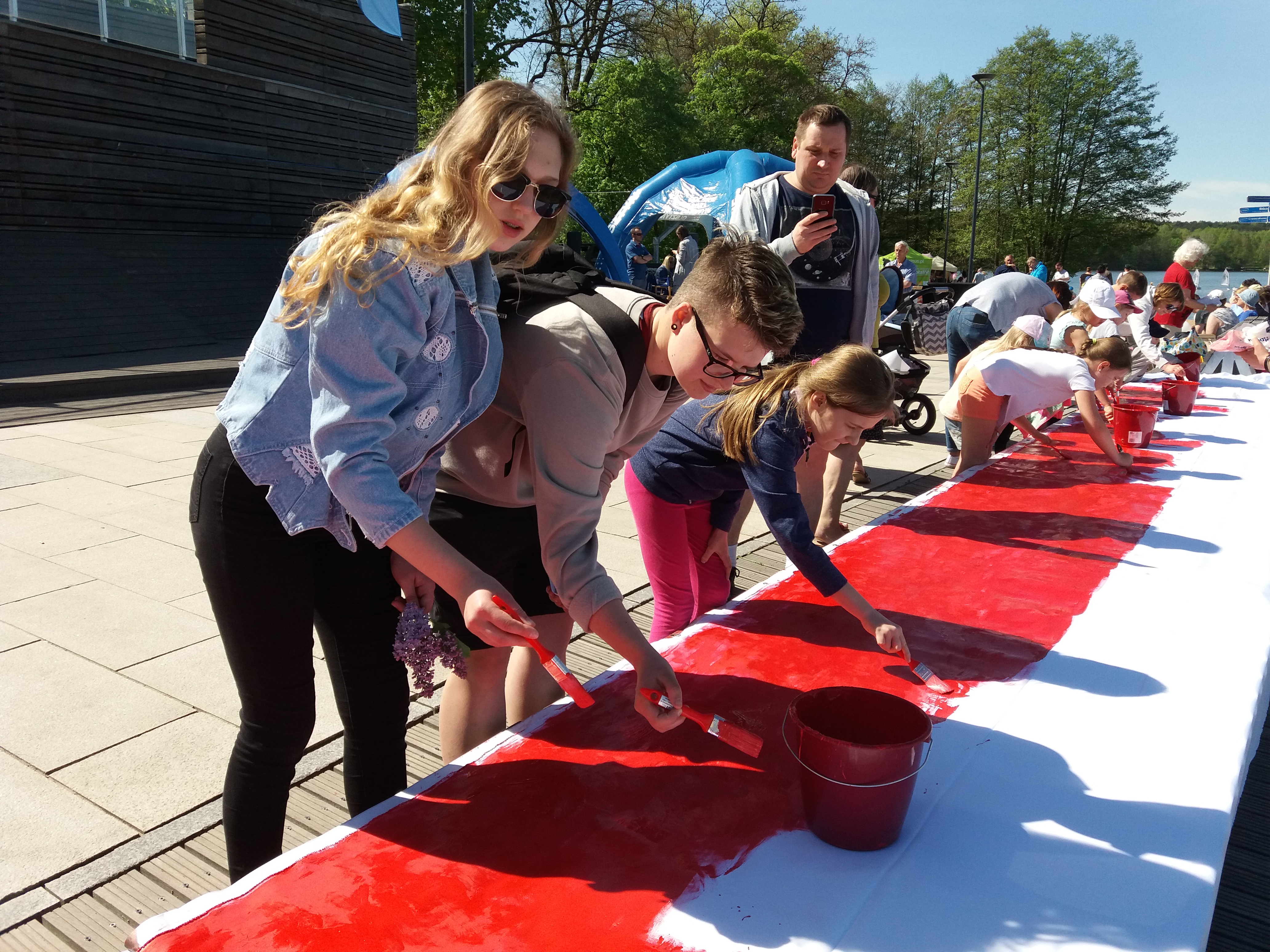 Razem ze słuchaczami pomalowaliśmy flagę o długości 20 metrów. Na plażę miejską, gdzie rozstawiliśmy sprzęt do pracy przyjechały całe rodziny. Wspólnemu malowaniu towarzyszyło biesiadowanie przy grillu.