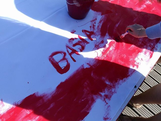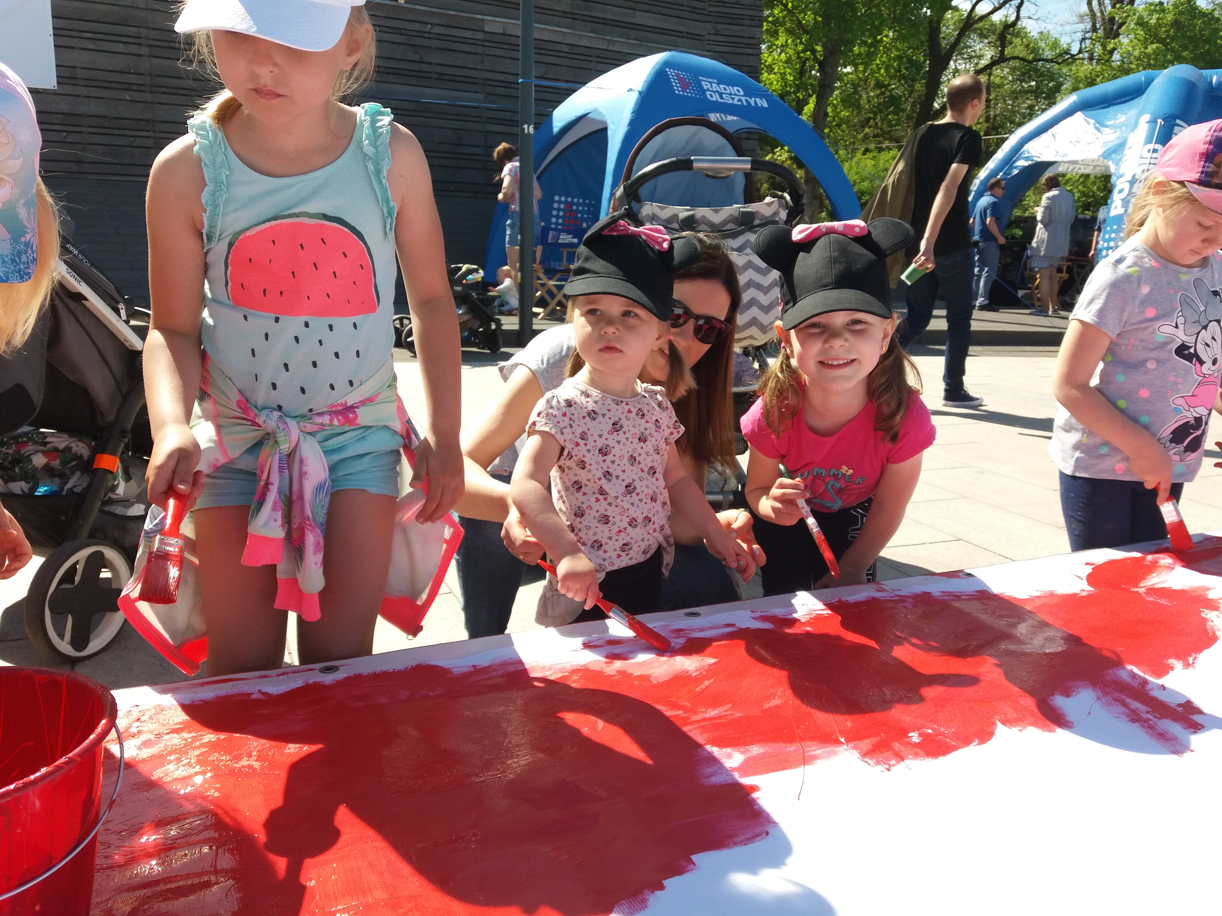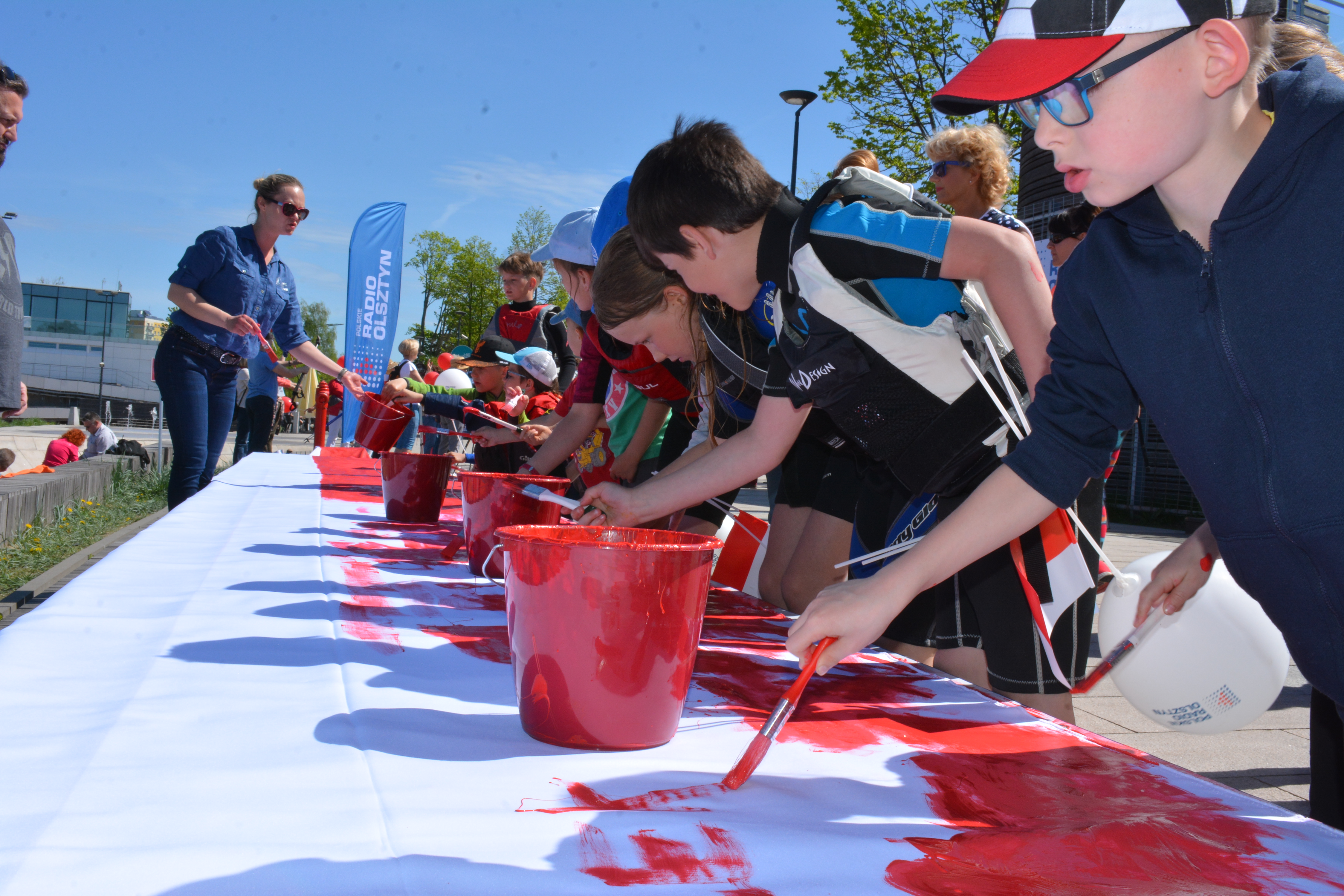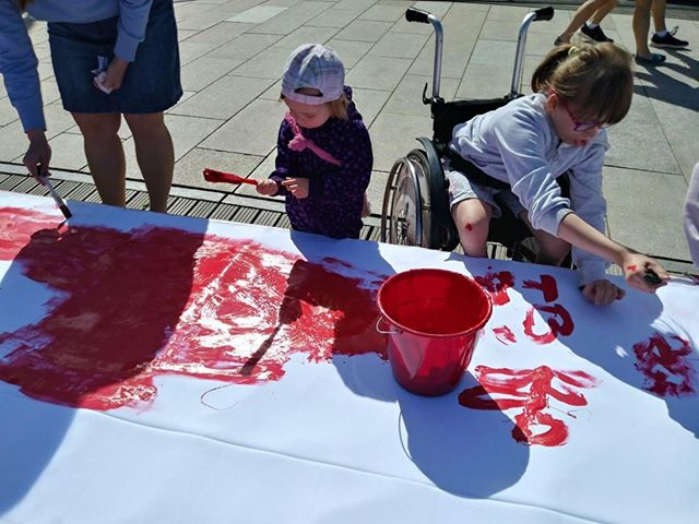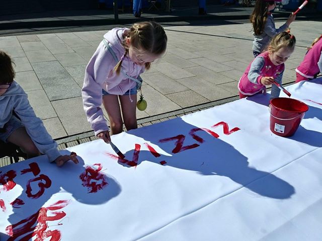 Razem ze słuchaczami pomalowaliśmy flagę o długości 20 metrów. Na plażę miejską, gdzie rozstawiliśmy sprzęt do pracy przyjechały całe rodziny. Wspólnemu malowaniu towarzyszyło biesiadowanie przy grillu.