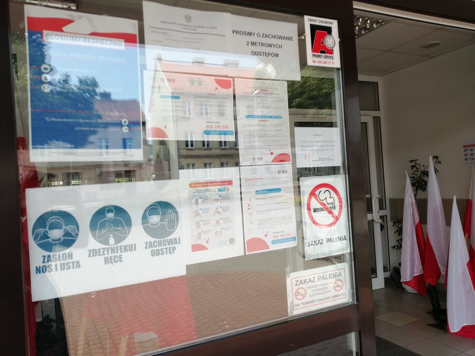 Jednorazowe długopisy, obowiązkowe maseczki zasłaniające usta i nos lub przyłbica, dezynfekcja rąk przed wejściem na salę. W związku z pandemią wybory prezydenckie odbywają się pod reżimem sanitarnym.