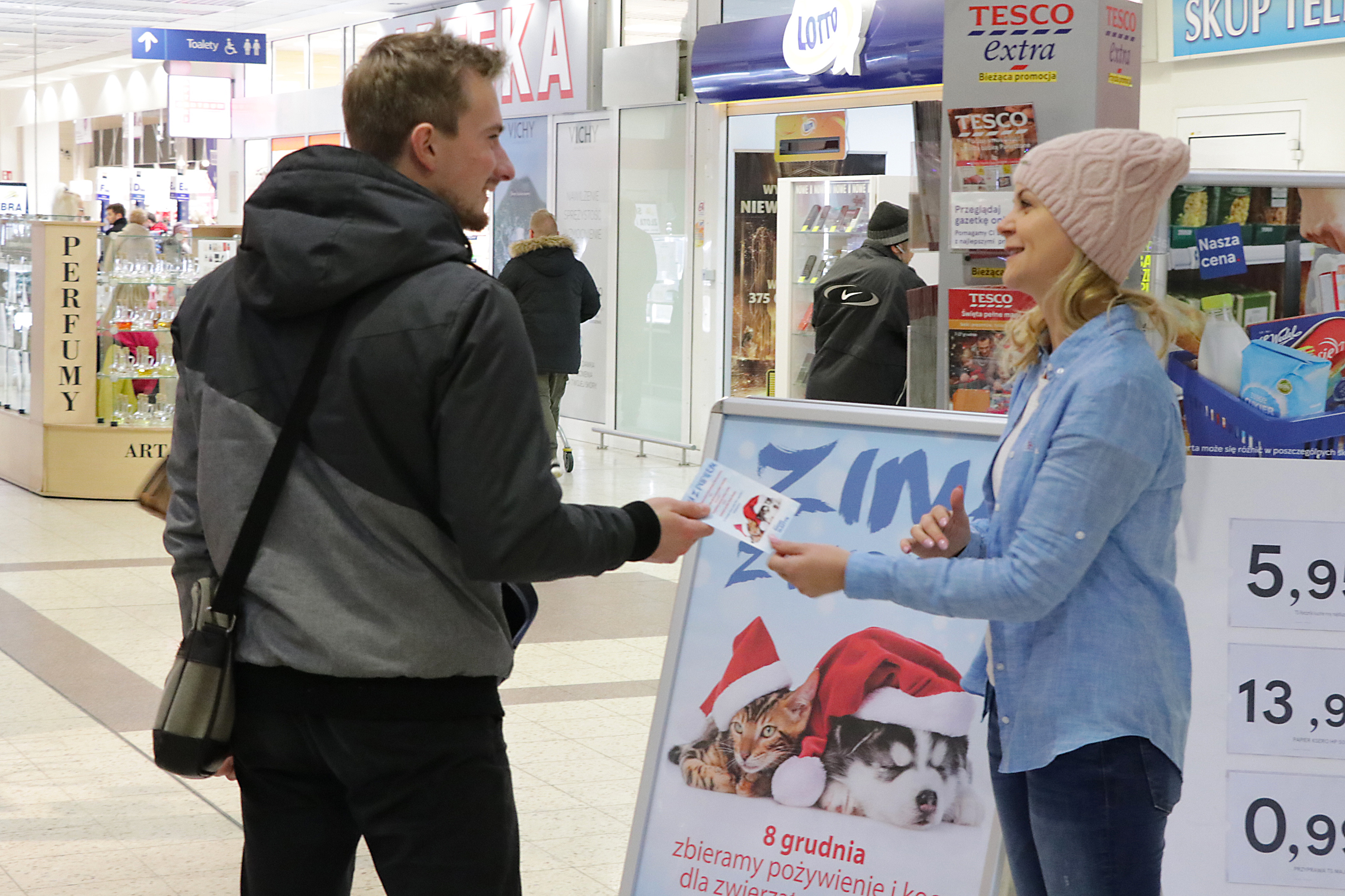 Zima z pupilem, zbiórka karmy, Tesco