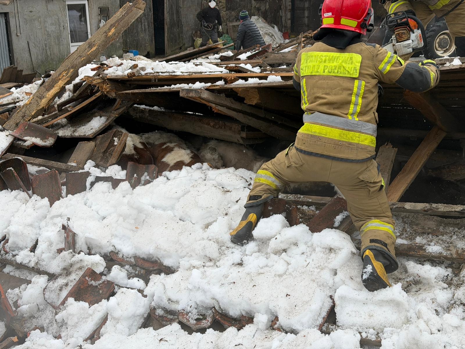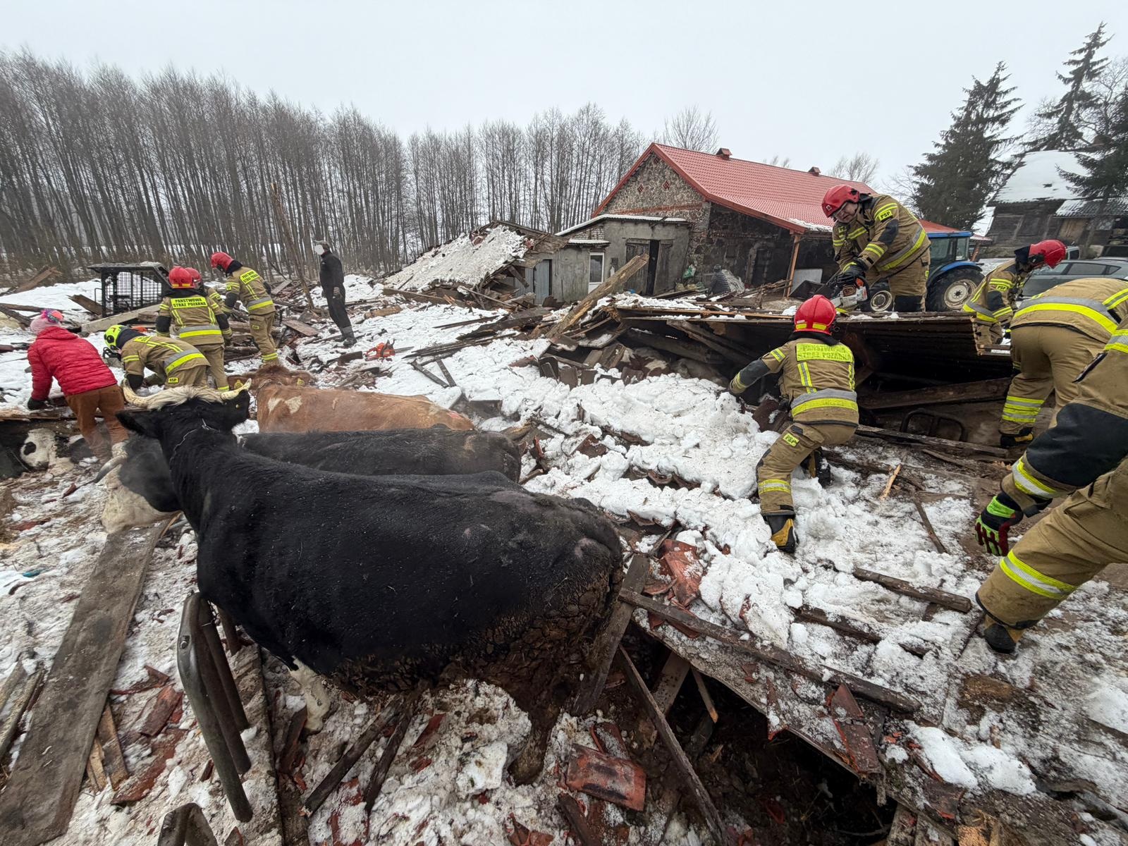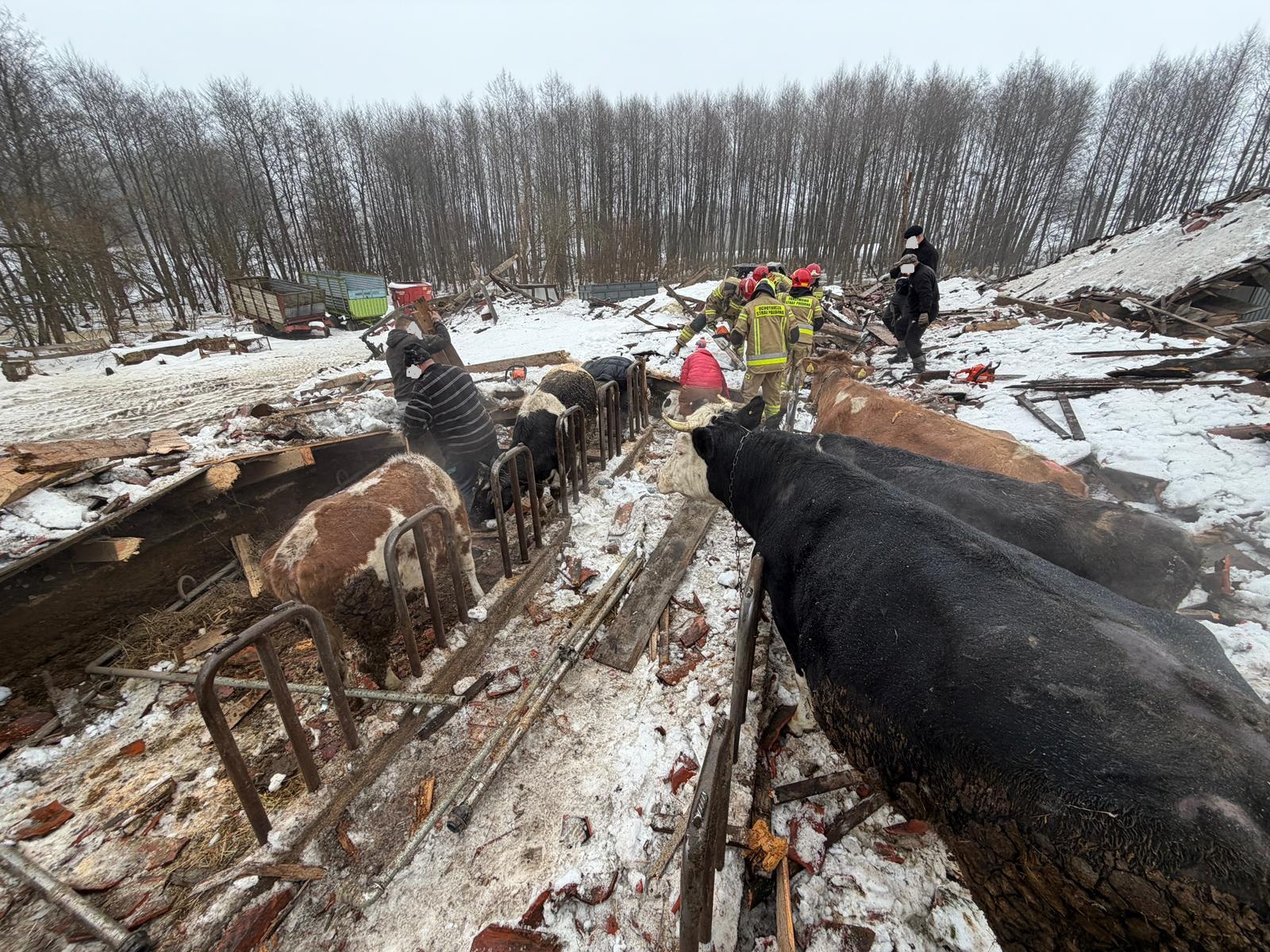 Nasze działania polegały na usunięciu zawalonej konstrukcji, aby uzyskać dostęp do zwierząt. Siedemnaście sztuk wyszło bez szwanku, cztery zwierzęta padły, a dwa zostały ranne