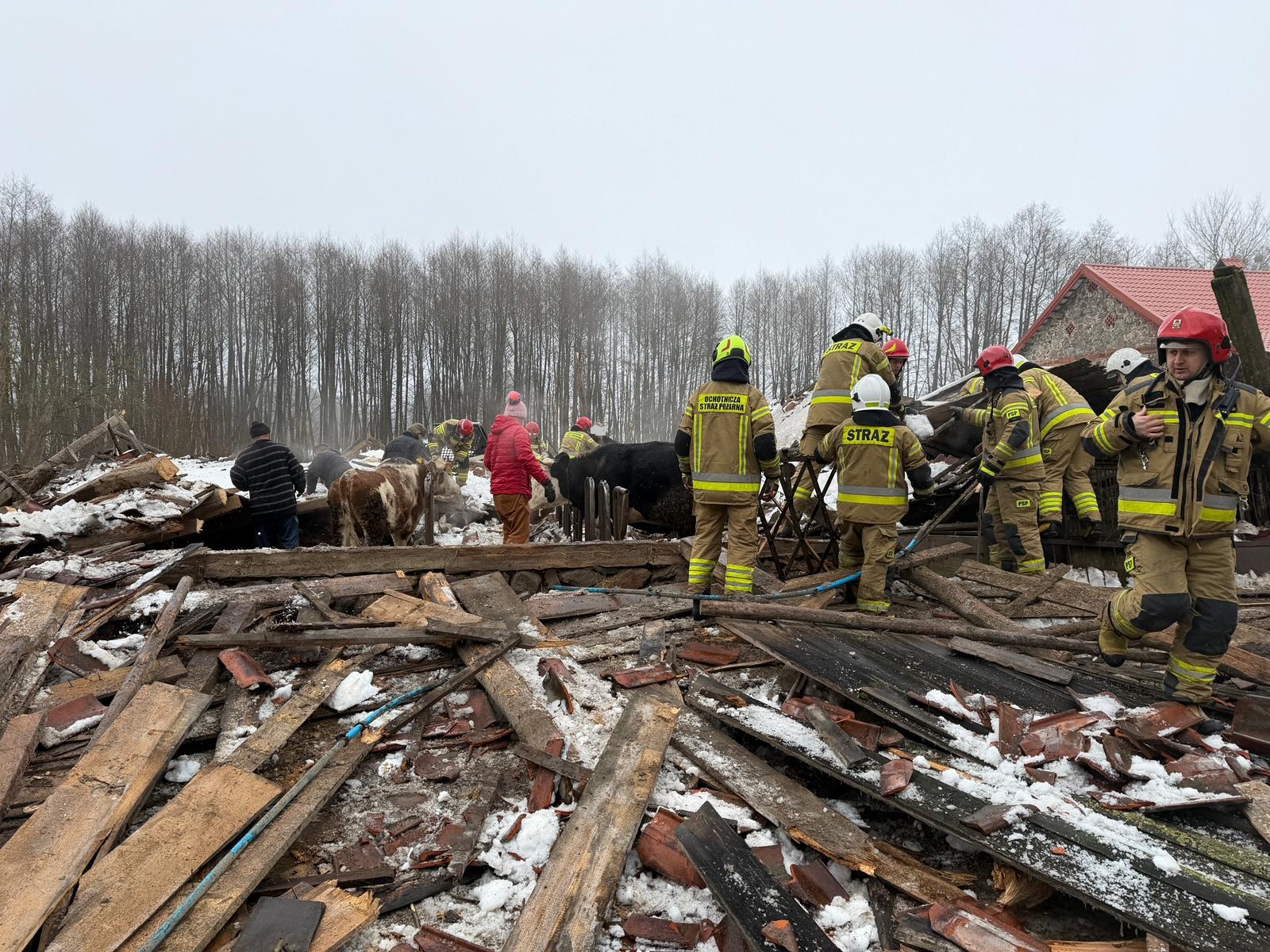 We wsi Laśmiady w powiecie ełckim zawalił się dach stodoły, w której przebywało bydło. Kilku sztuk nie udało się uratować.