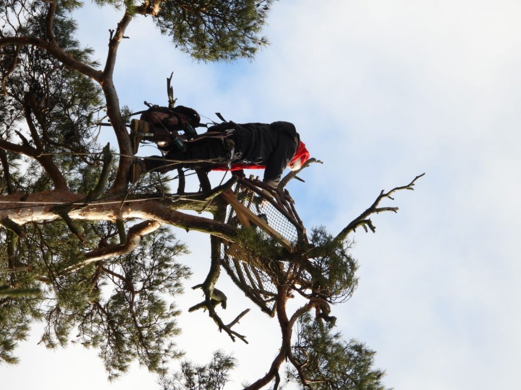 W zeszłym roku doszło do długo oczekiwanego stwierdzenia lęgu rybołowa na terenie Nadleśnictwa Spychowo. Niestety w trakcie procesu zakładania strefy ochronnej dla gniazda, silny wiatr pokrzyżował szyki i strącił gniazdo z drzewa, na szczęście już po udanym wyprowadzeniu potomstwa przez rybołowy. Dzięki inicjatywie i pracy Pana Michała Lanckorońskiego z Komitetu Ochrony Orłów została zamontowana solidna platforma do założenia gniazda na tym samym drzewie, które ptaki wybrały poprzedniego roku.
