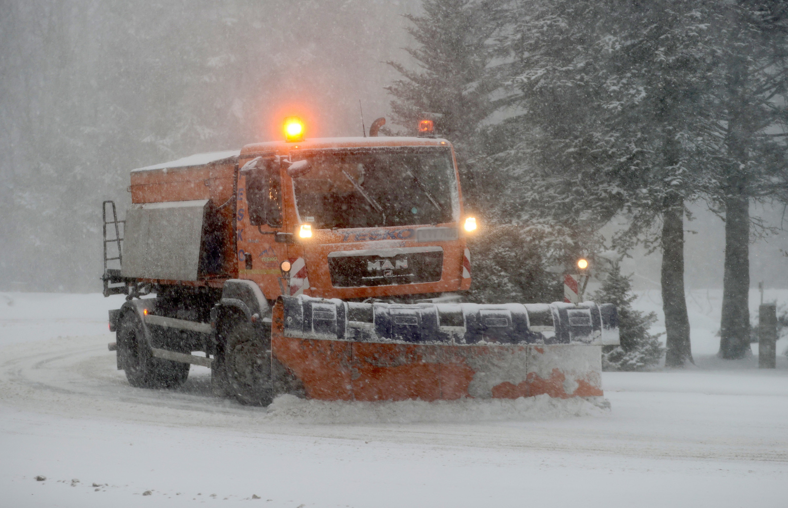 Warunki drogowe są trudne. Odśnieżamy sukcesywnie. Cały sprzęt jest w pracy. Przy opadach śniegu nie sposób na bieżąco udrożnić drogi