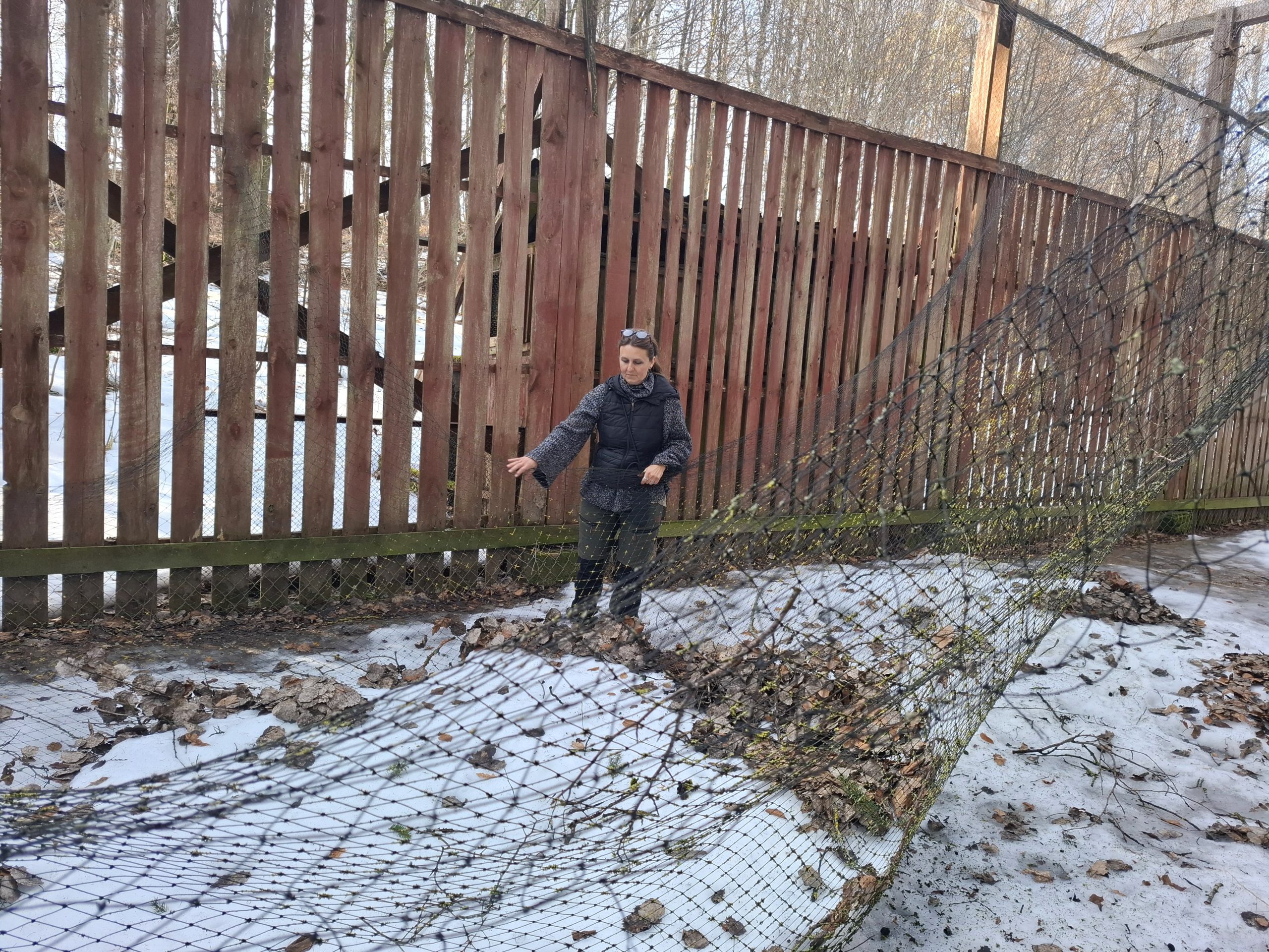 Ta zima była ciężka nie tylko dla ptaków, ale także dla ośrodka. Zawaliły się dwie największe woliery. Jedna z nich treningowa, w której ptaki ćwiczą latanie. Jest to woliera dla dużych szponiastych ptaków, jak bieliki czy myszołowy. Jest nieczynna i pilnie musimy ją wyremontować